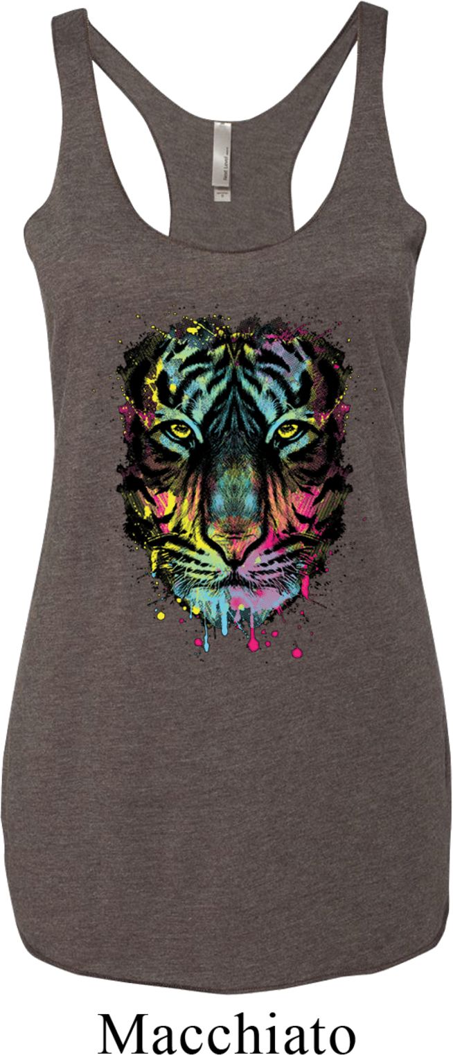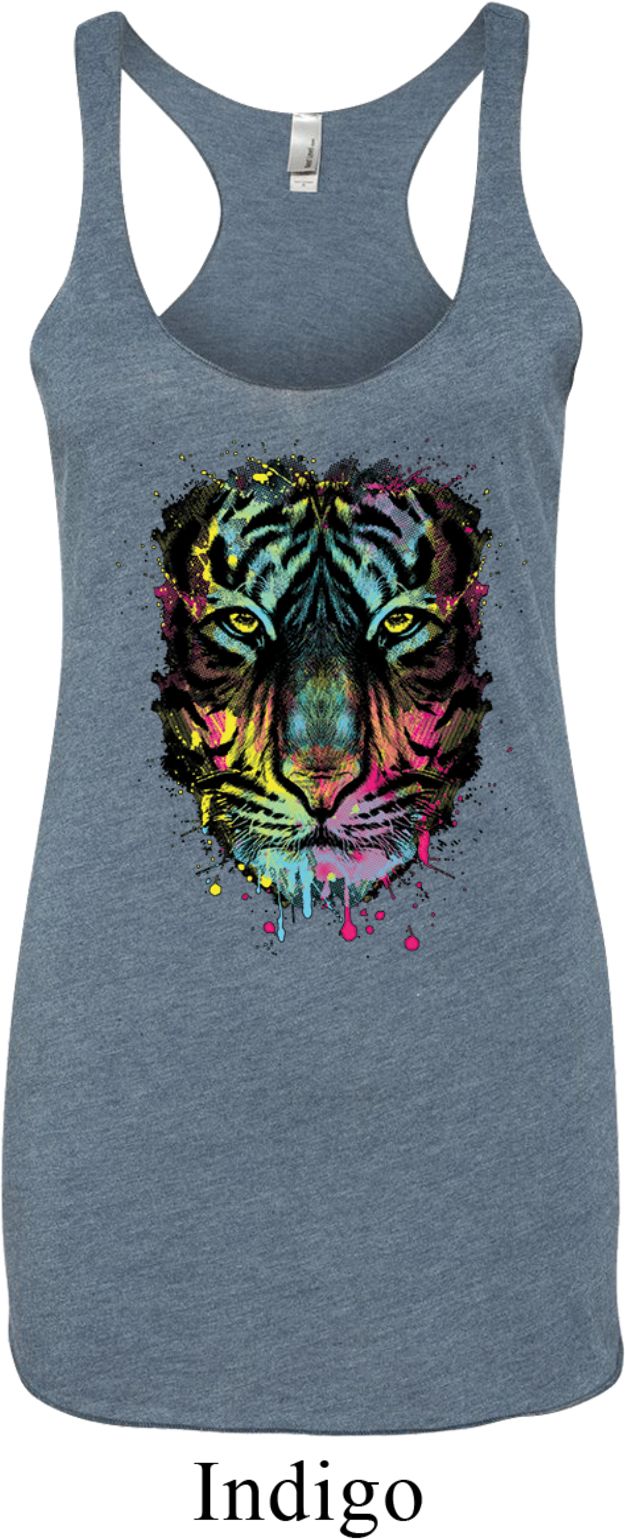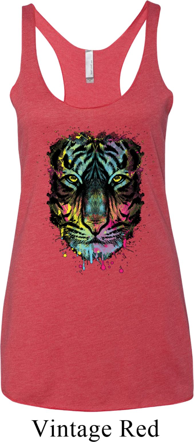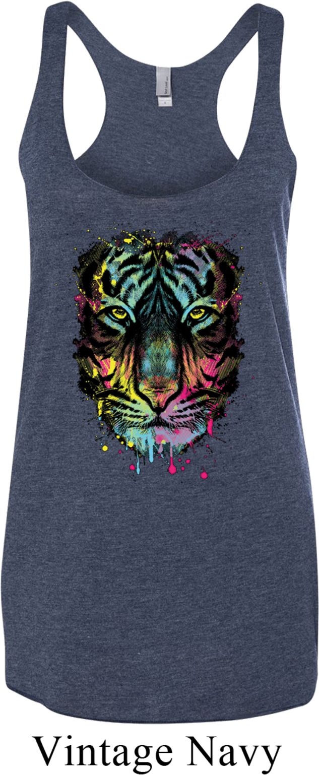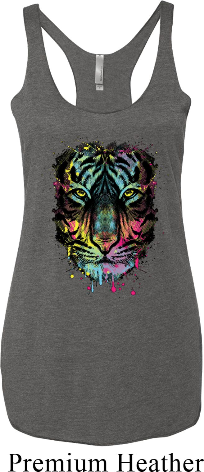 | | Dripping Neon Tiger Ladies Tri Blend Racerback Tank TopDripping Neon Tiger Ladies Tri Blend Racerback Tank Top A tiger shirt with a cool dripping effect A cotton/poly/rayon blend Available in Ladies XS, Ladies Small, Ladies Medium, Ladies Large & Ladies XL Also available in colors Envy, Heather White, Indigo, Macchiato, Premium Heather, Purple Rush, Tahiti, Venetian Grey, Vintage Black, Vintage Navy, Vintage Pink, Vintage Purple, Vintage Red, and Vintage Royal |