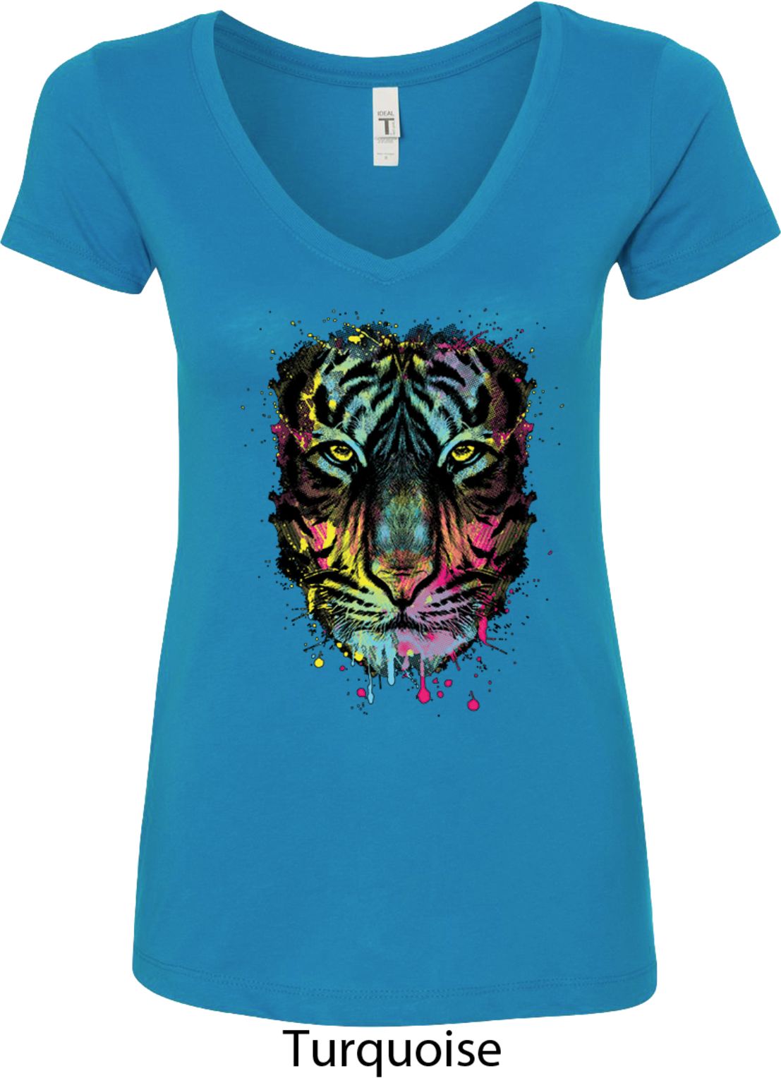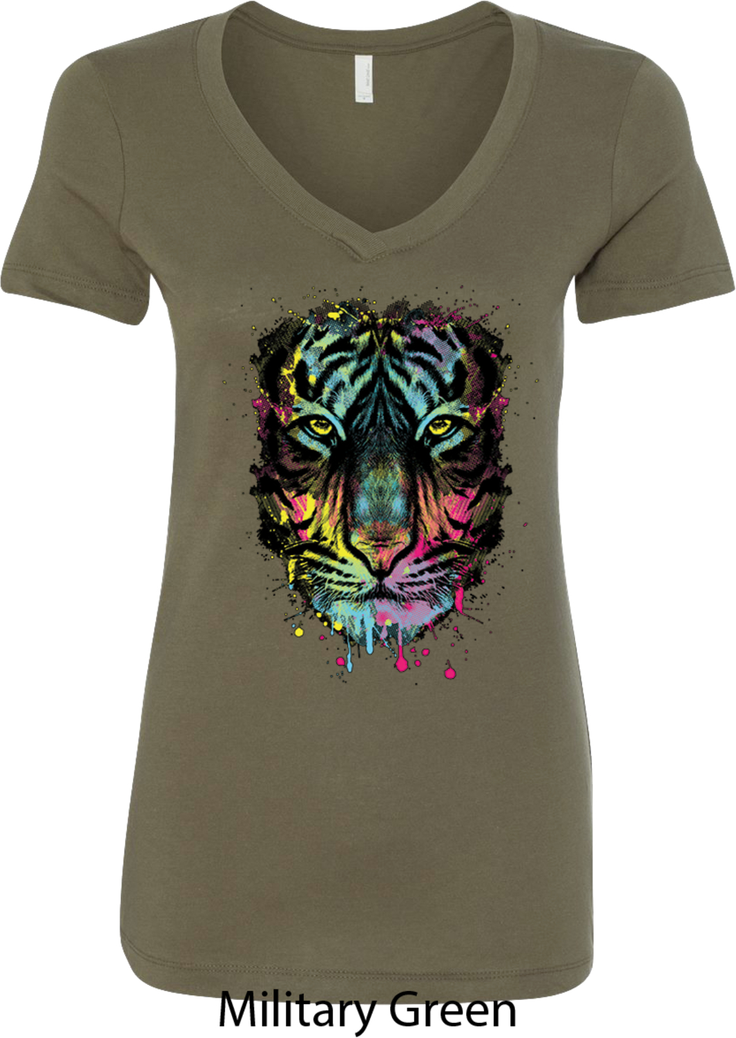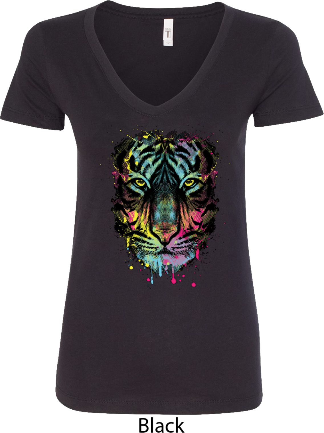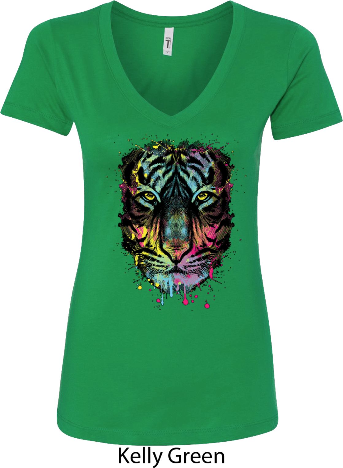 | | Dripping Neon Tiger Ladies V-Neck ShirtDripping Neon Tiger Ladies V-Neck Shirt A tiger shirt with a cool dripping effect! A cotton/poly blend Available in Ladies Small, Ladies Medium, Ladies Large, Ladies XL & Ladies 2XL Also available in colors Banana, Black, Dark Grey, Hot Pink, Indigo, Kelly, Midnight, Military, Purple, Raspberry, Red, Royal, Silver, Tahiti, Turquoise, Warm Grey, and White |