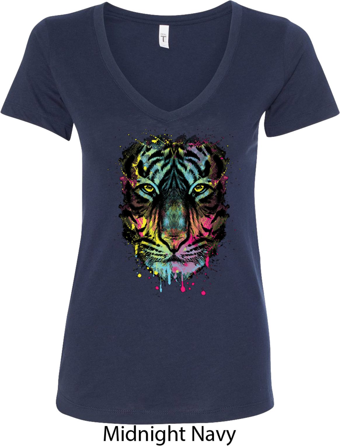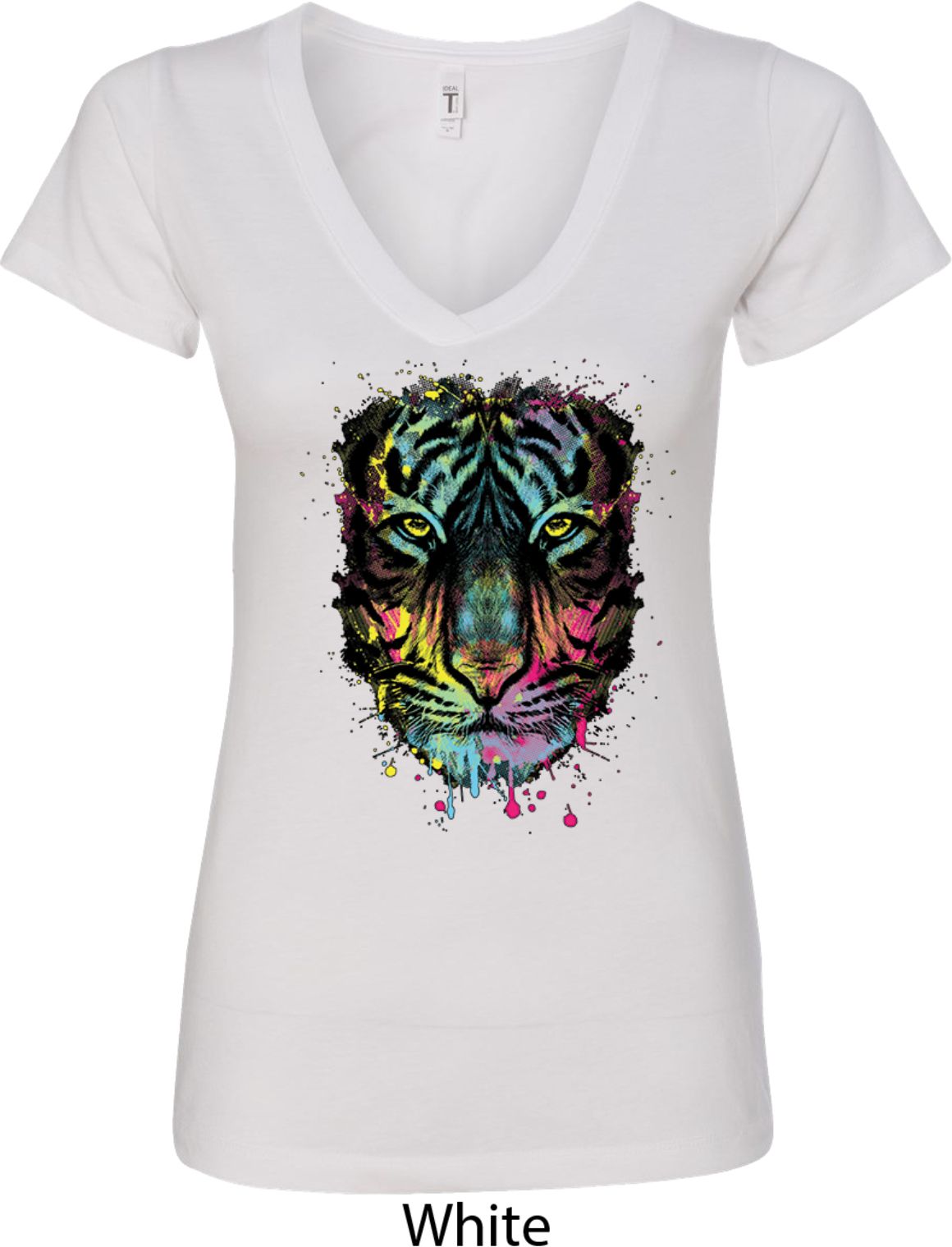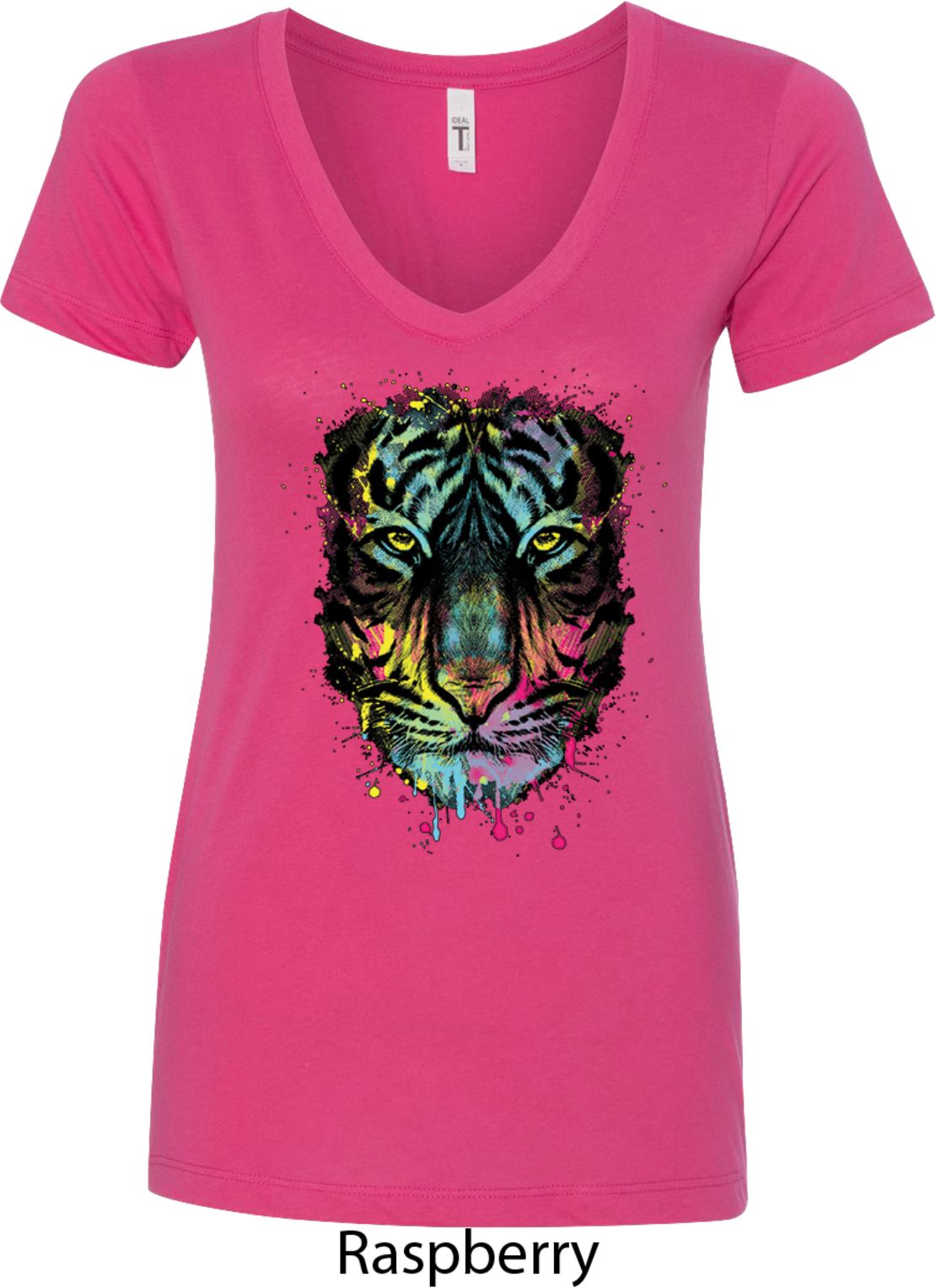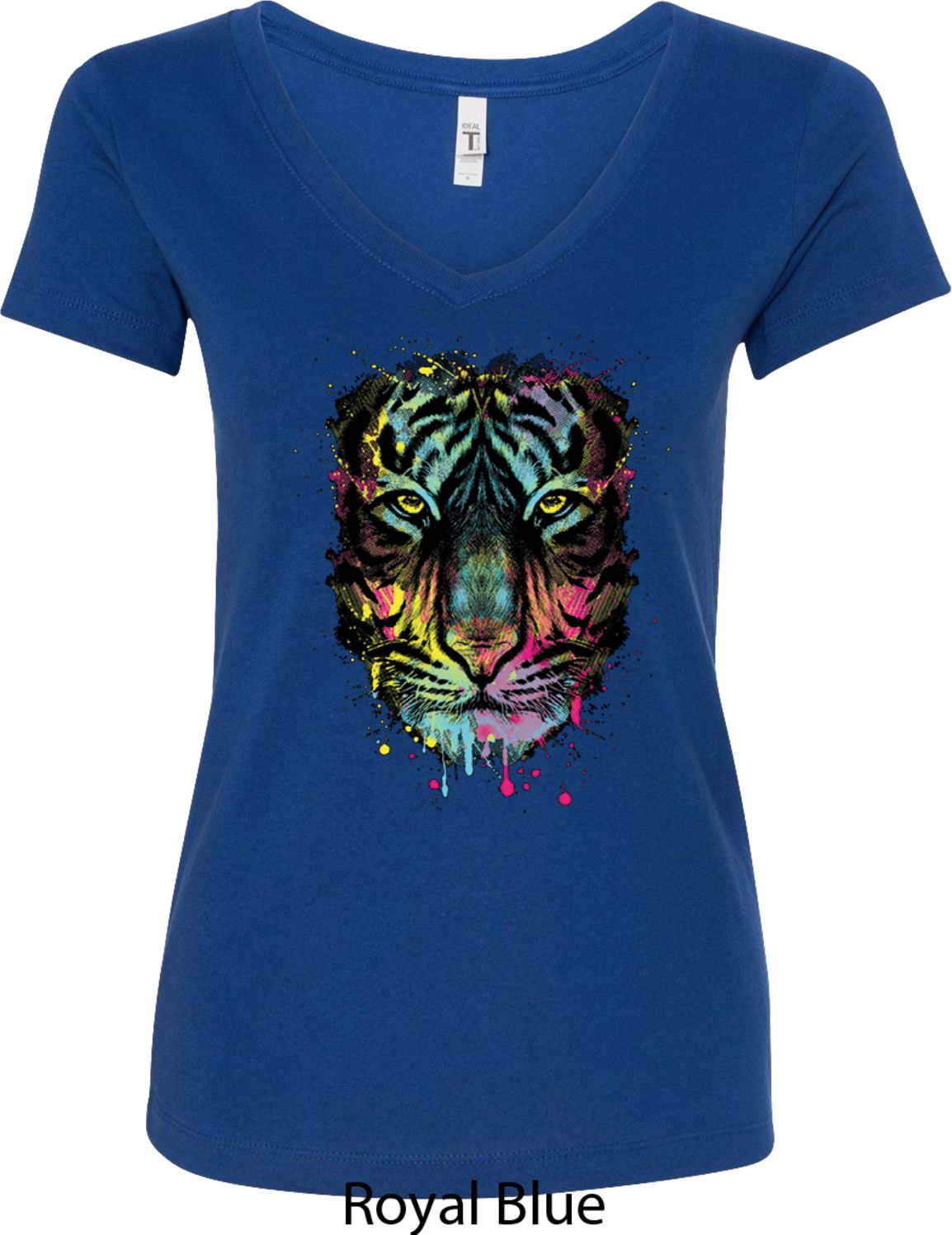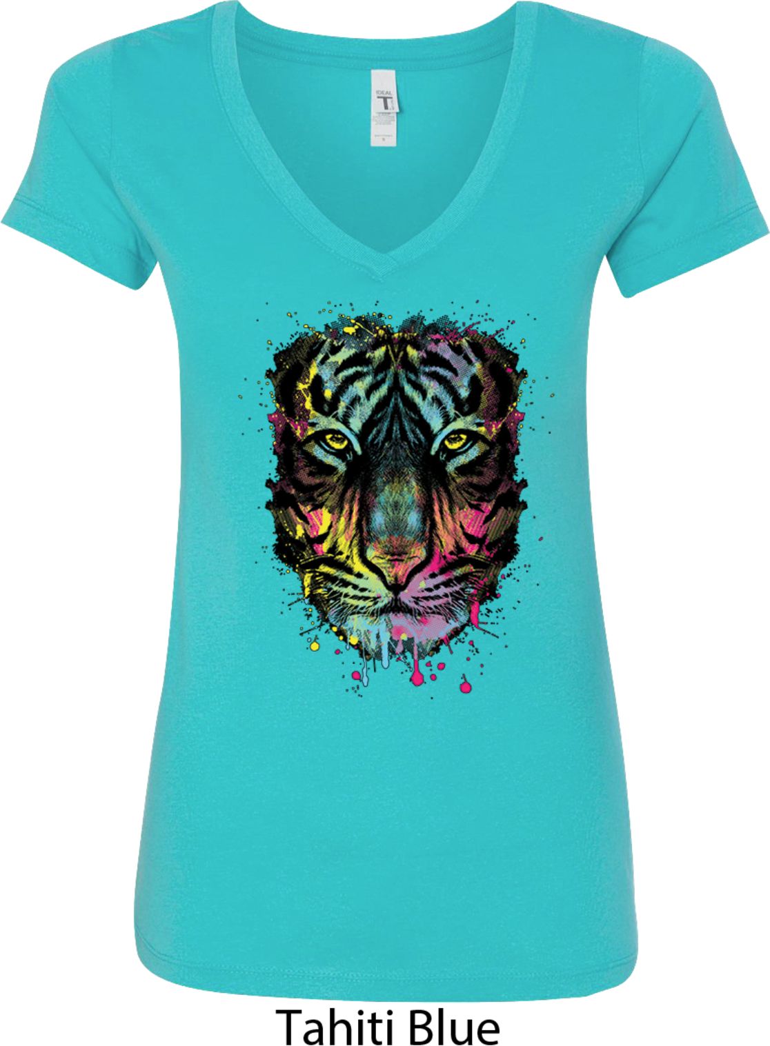 | | Dripping Neon Tiger Ladies V-Neck ShirtDripping Neon Tiger Ladies V-Neck Shirt A tiger shirt with a cool dripping effect! A cotton/poly blend Available in Ladies Small, Ladies Medium, Ladies Large, Ladies XL & Ladies 2XL Also available in colors Banana, Black, Dark Grey, Hot Pink, Indigo, Kelly, Midnight, Military, Purple, Raspberry, Red, Royal, Silver, Tahiti, Turquoise, Warm Grey, and White |