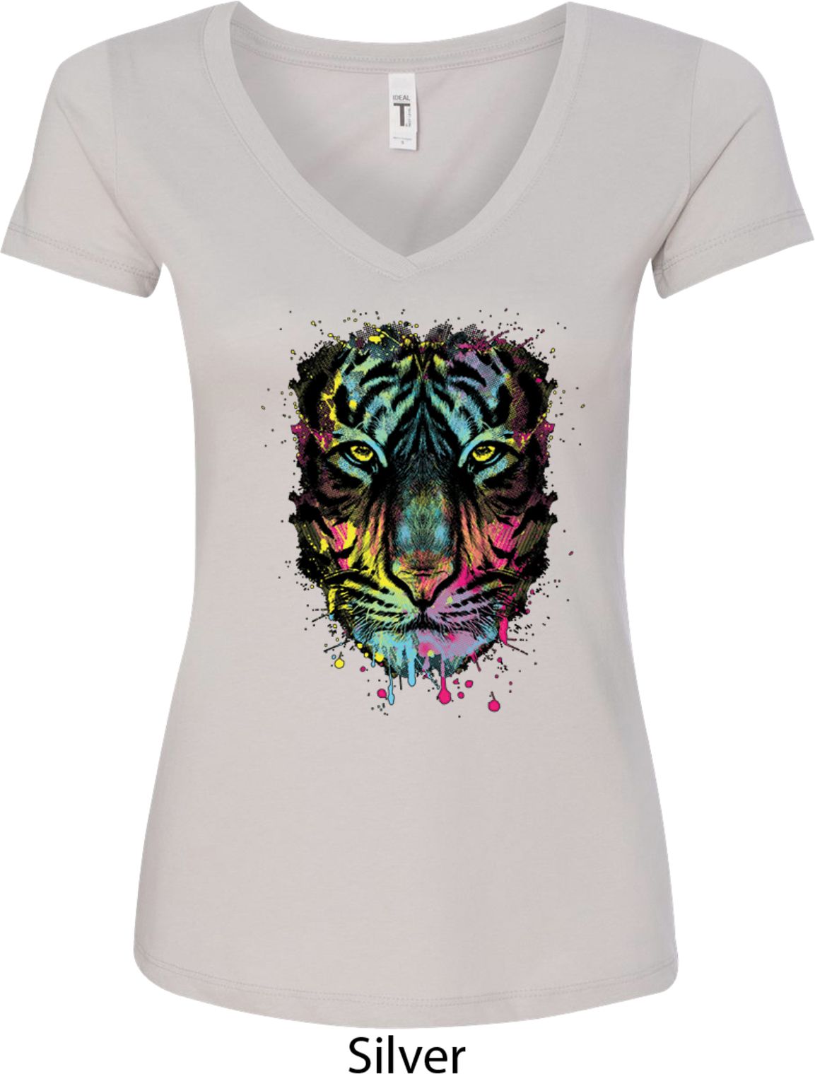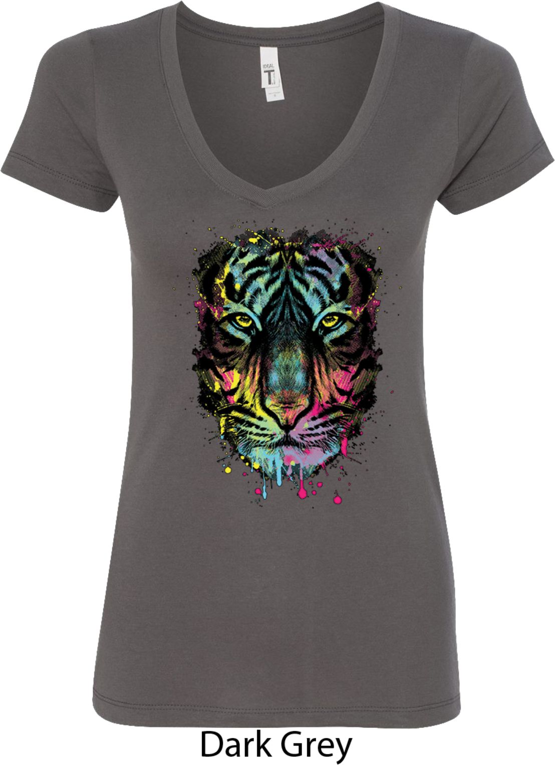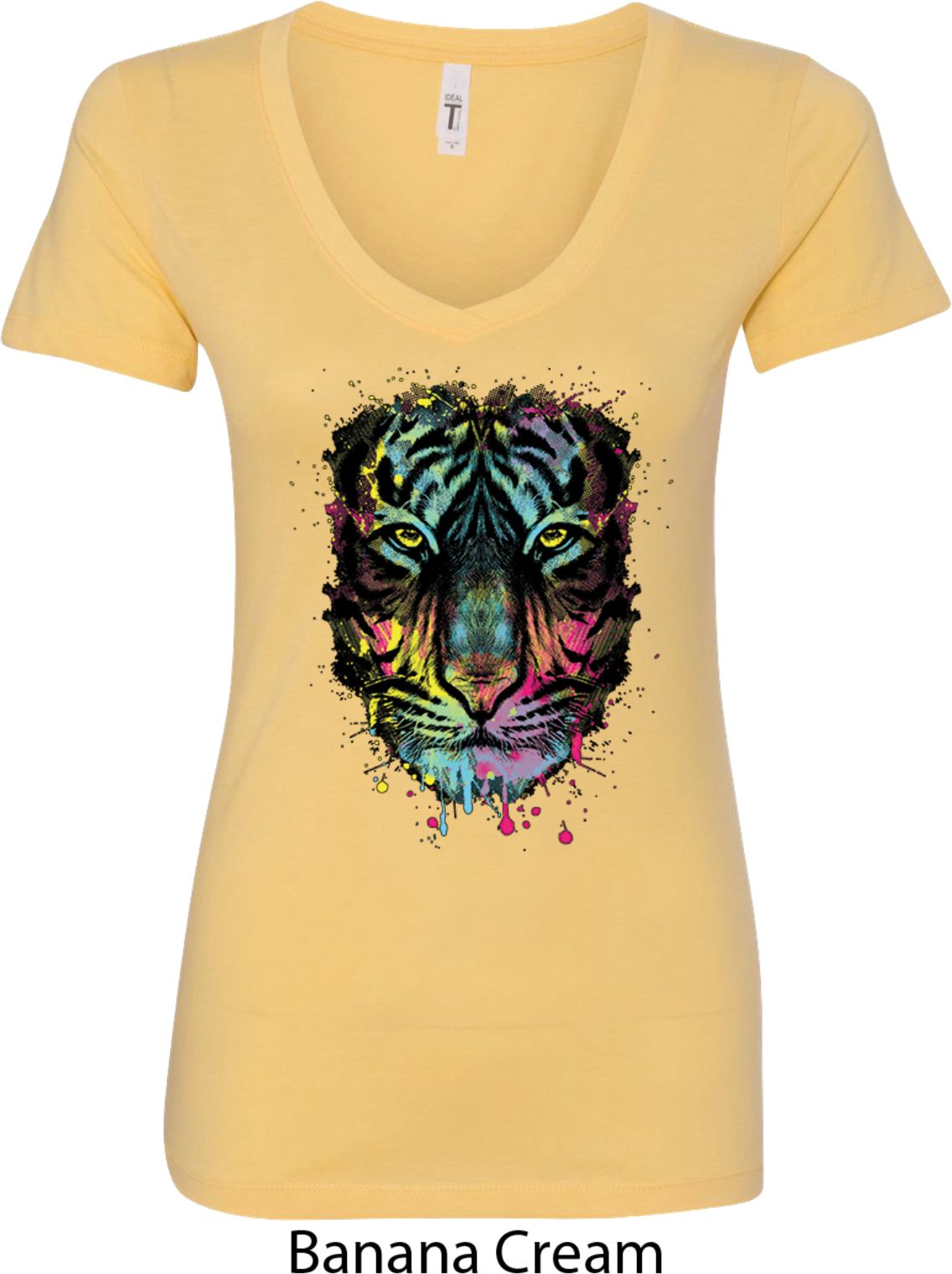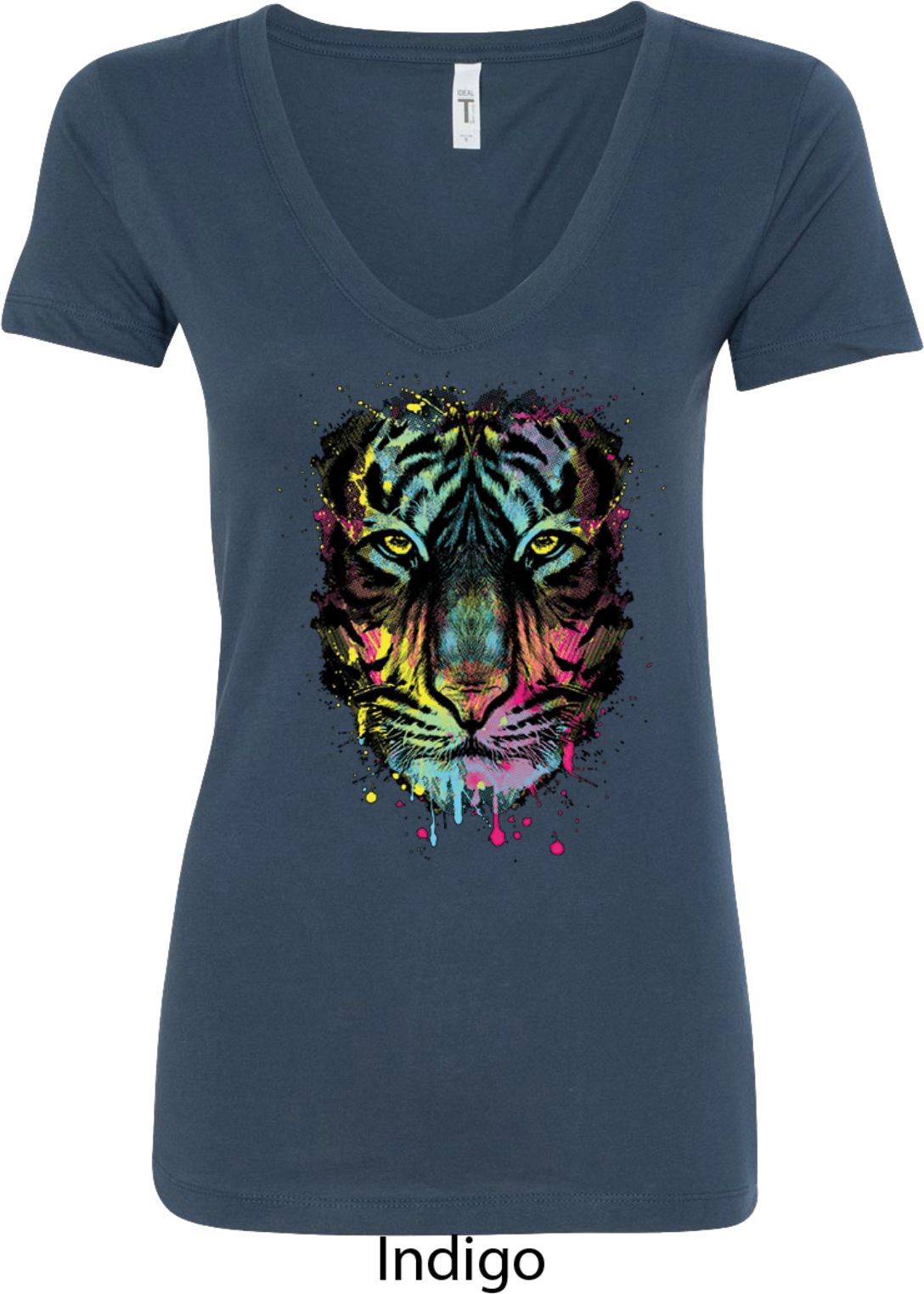| | Dripping Neon Tiger Ladies V-Neck ShirtDripping Neon Tiger Ladies V-Neck Shirt A tiger shirt with a cool dripping effect! A cotton/poly blend Available in Ladies Small, Ladies Medium, Ladies Large, Ladies XL & Ladies 2XL Also available in colors Banana, Black, Dark Grey, Hot Pink, Indigo, Kelly, Midnight, Military, Purple, Raspberry, Red, Royal, Silver, Tahiti, Turquoise, Warm Grey, and White |