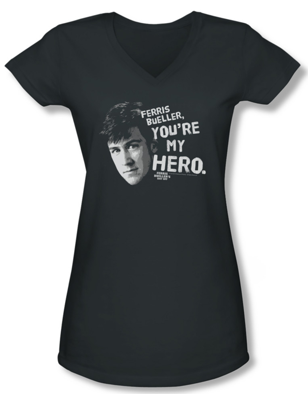 Ferris Bueller's Day Off Shirt Juniors V Neck My Hero Charcoal Tee T-Shirt