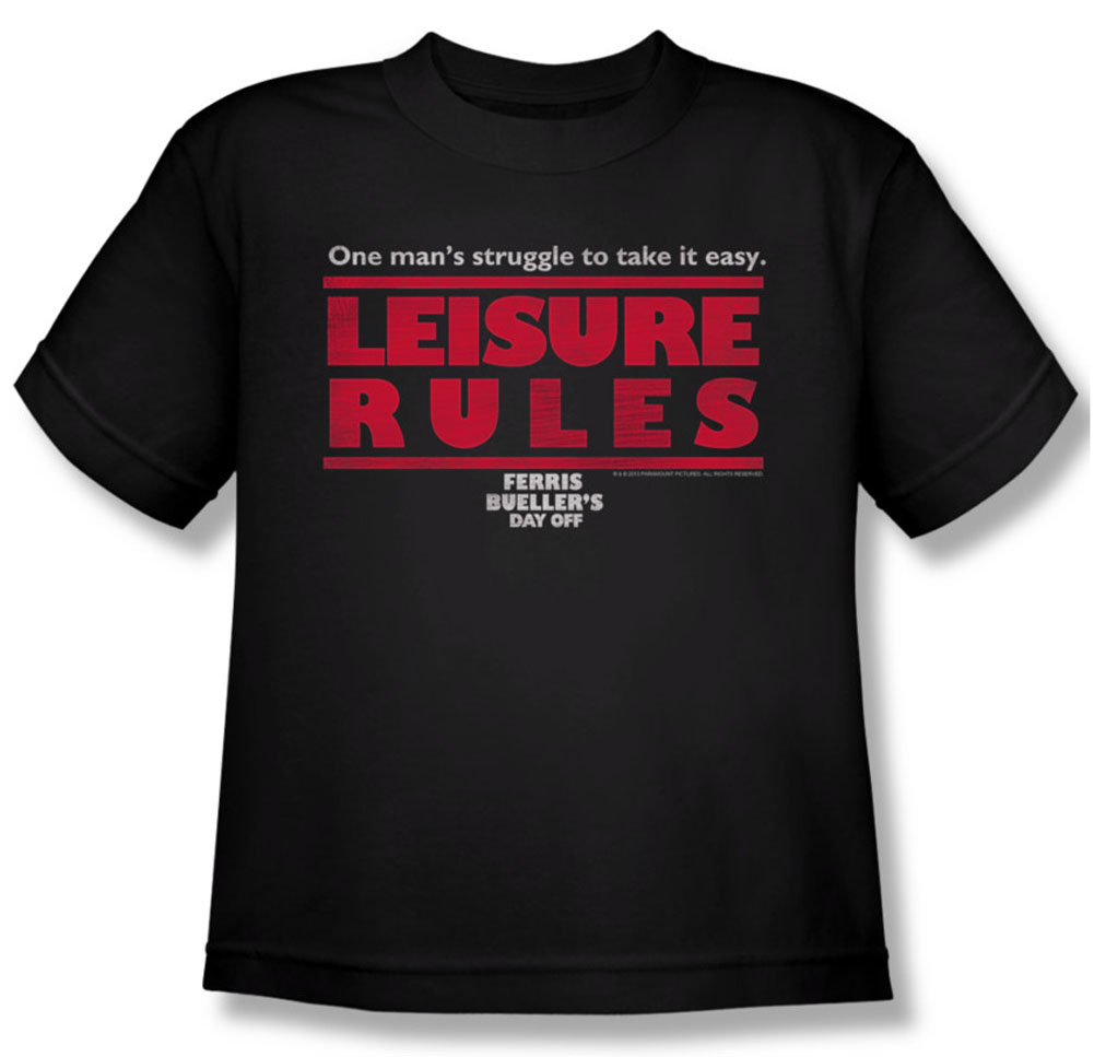 | | Ferris Bueller's Day Off Shirt Kids Leisure Rules Black Youth Tee T-ShirtFerris Bueller's Day Off Shirt Kids Leisure Rules Black Youth Tee T-Shirt Officially Licensed Available in Small(6-8), Medium(10-12), Large(14-16), & XL(18-20), Also available in Toddler sizes: Small (4), Medium (5/6), & Large (7) ![]() |