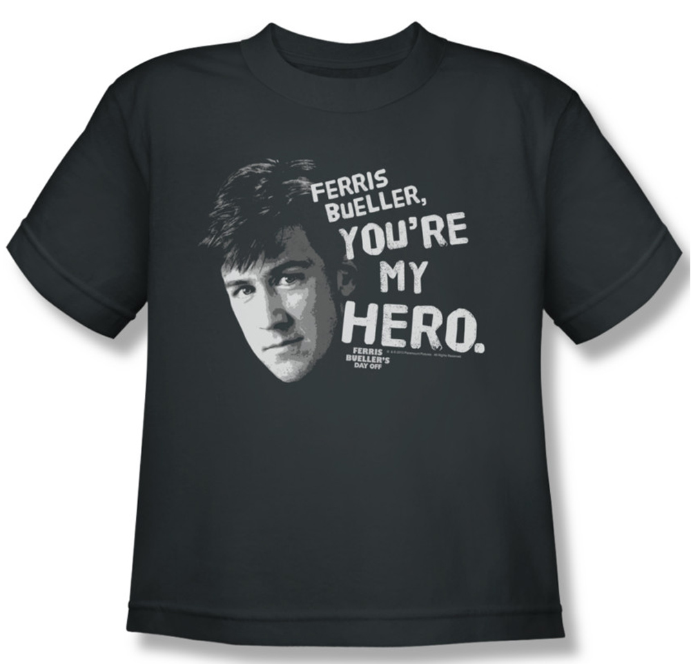 | | Ferris Bueller's Day Off Shirt Kids My Hero Charcoal Youth Tee T-ShirtFerris Bueller's Day Off Shirt Kids My Hero Charcoal Youth Tee T-Shirt Officially Licensed Available in Small(6-8), Medium(10-12), Large(14-16), & XL(18-20), Also available in Toddler sizes: Small (4), Medium (5/6), & Large (7) ![]() |