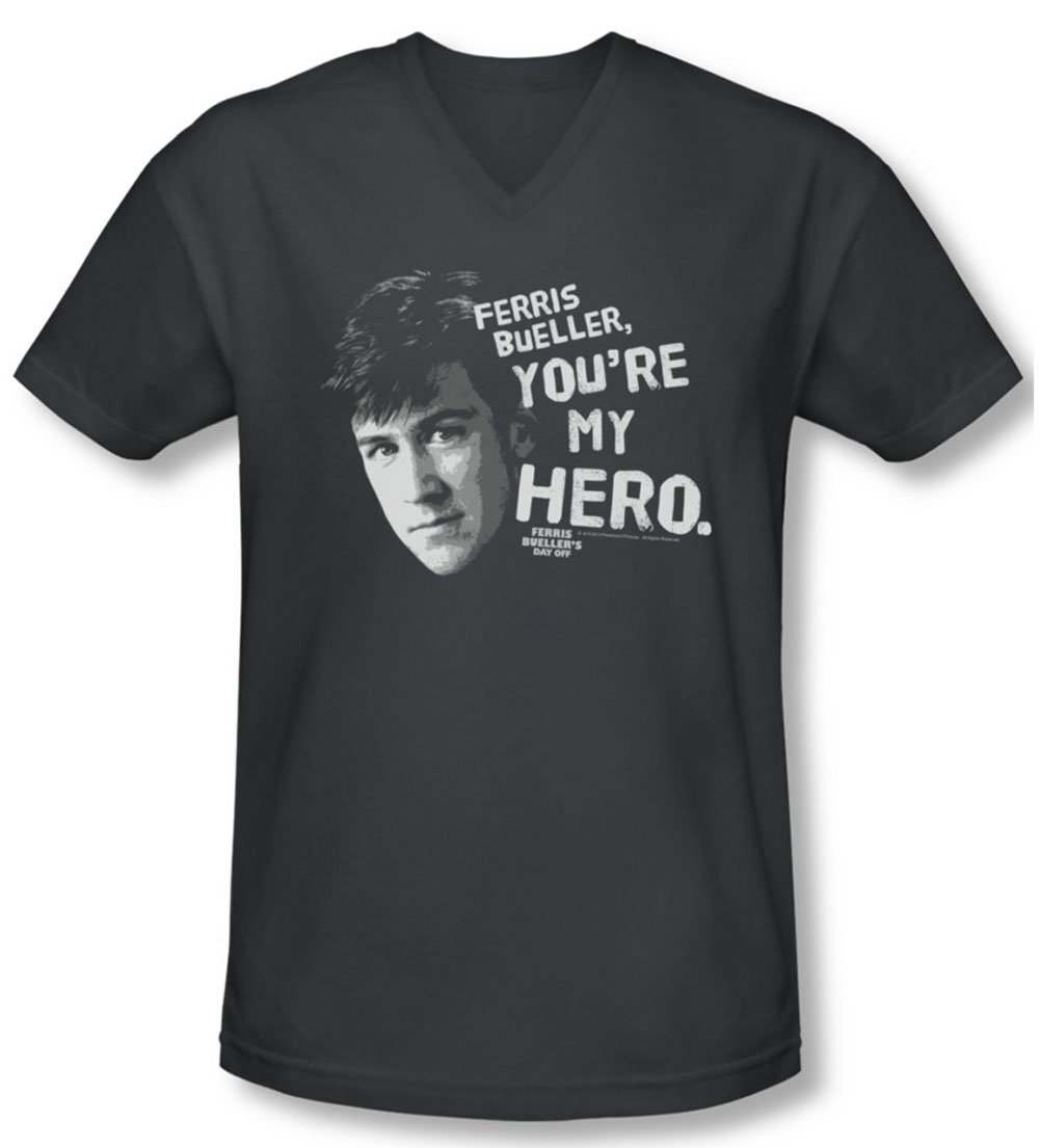 Ferris Bueller's Day Off Shirt Slim Fit V Neck My Hero Charcoal Tee T-Shirt
