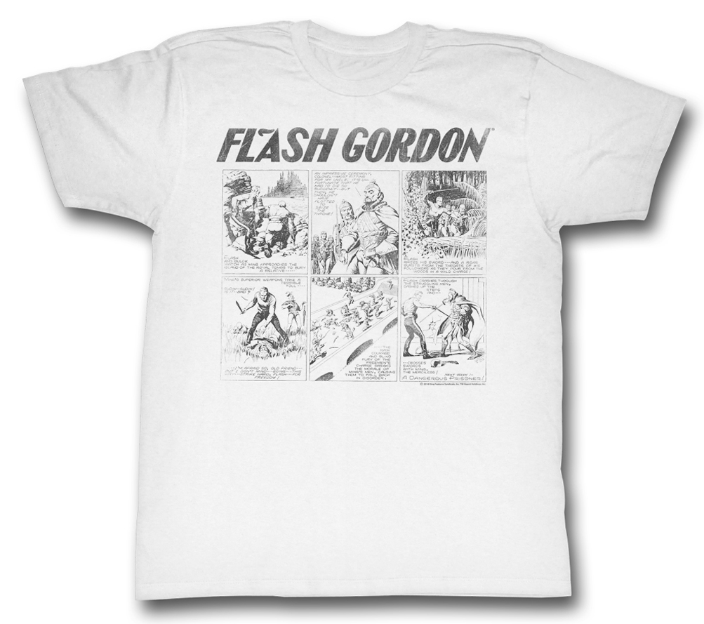| | Flash Gordon Shirt 6 Box Comic Strip White T-ShirtFlash Gordon Shirt 6 Box Comic Strip White T-Shirt It's a collage of comic book scenes from the classic Flash Gordon comic books!. Flash Gordon shirt is a must-have for all Flash Gordon fans. Buy yours today! Officially Licensed Available in Small, Medium, Large, XL & 2XL ![]() |
