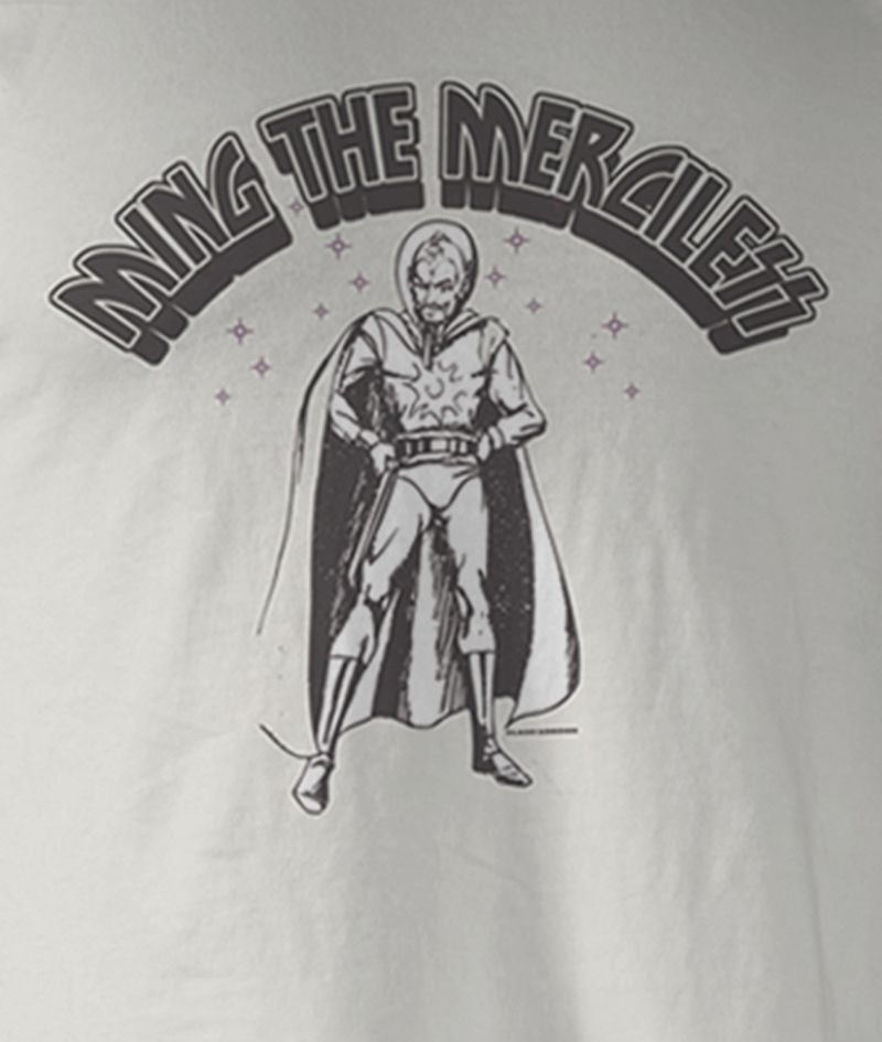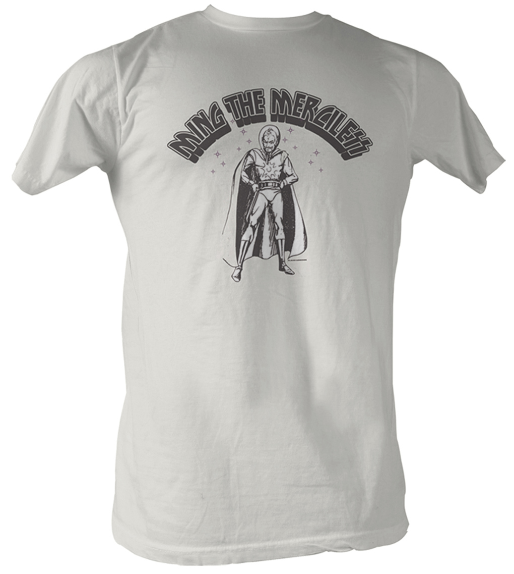 Flash Gordon white t-shirt. Features the main villain, Ming the Merciless.