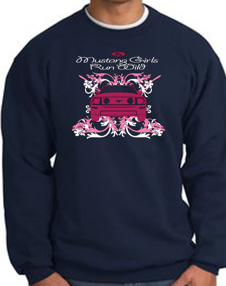 Ford Mustang Sweatshirt - Girls Run Wild Adult Navy Sweat Shirt
