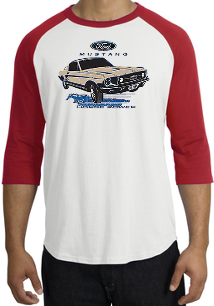 Ford Mustang Raglan Shirt - Horsepower Adult White/Red T-ShirtFord Mustang Raglan Shirt - Horsepower Adult White/Red T-Shirt