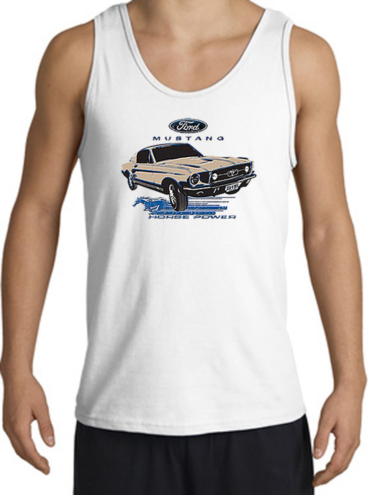 Ford Mustang Tank Top - Horsepower Adult White Tanktop