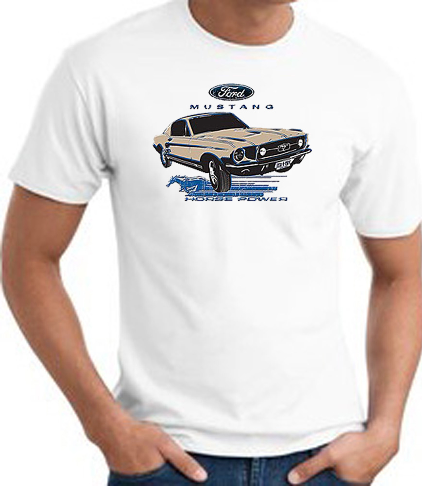 Ford Mustang T-shirt - Horsepower Adult White Tee ShirtFord Mustang T-shirt - Horsepower Adult White Tee Shirt