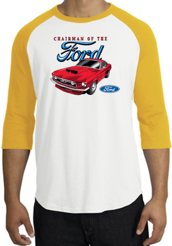 Ford Mustang Raglan Shirt - Chairman Of The Ford Adult White/Gold