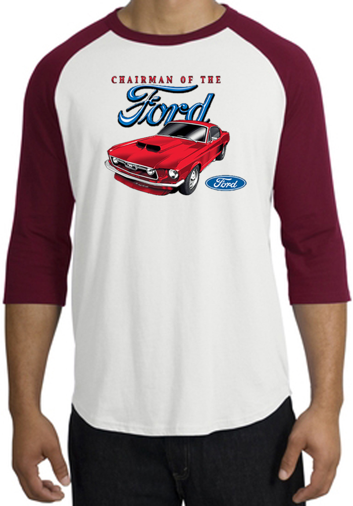 Ford Mustang Raglan Shirt - Chairman Of The Ford Adult White/CardinalFord Mustang Raglan Shirt - Chairman Of The Ford Adult White/Cardinal