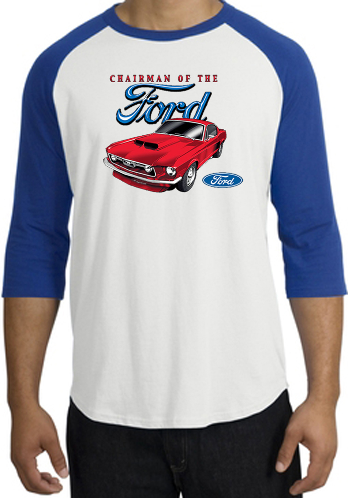Ford Mustang Raglan Shirt - Chairman Of The Ford Adult White/RoyalFord Mustang Raglan Shirt - Chairman Of The Ford Adult White/Royal