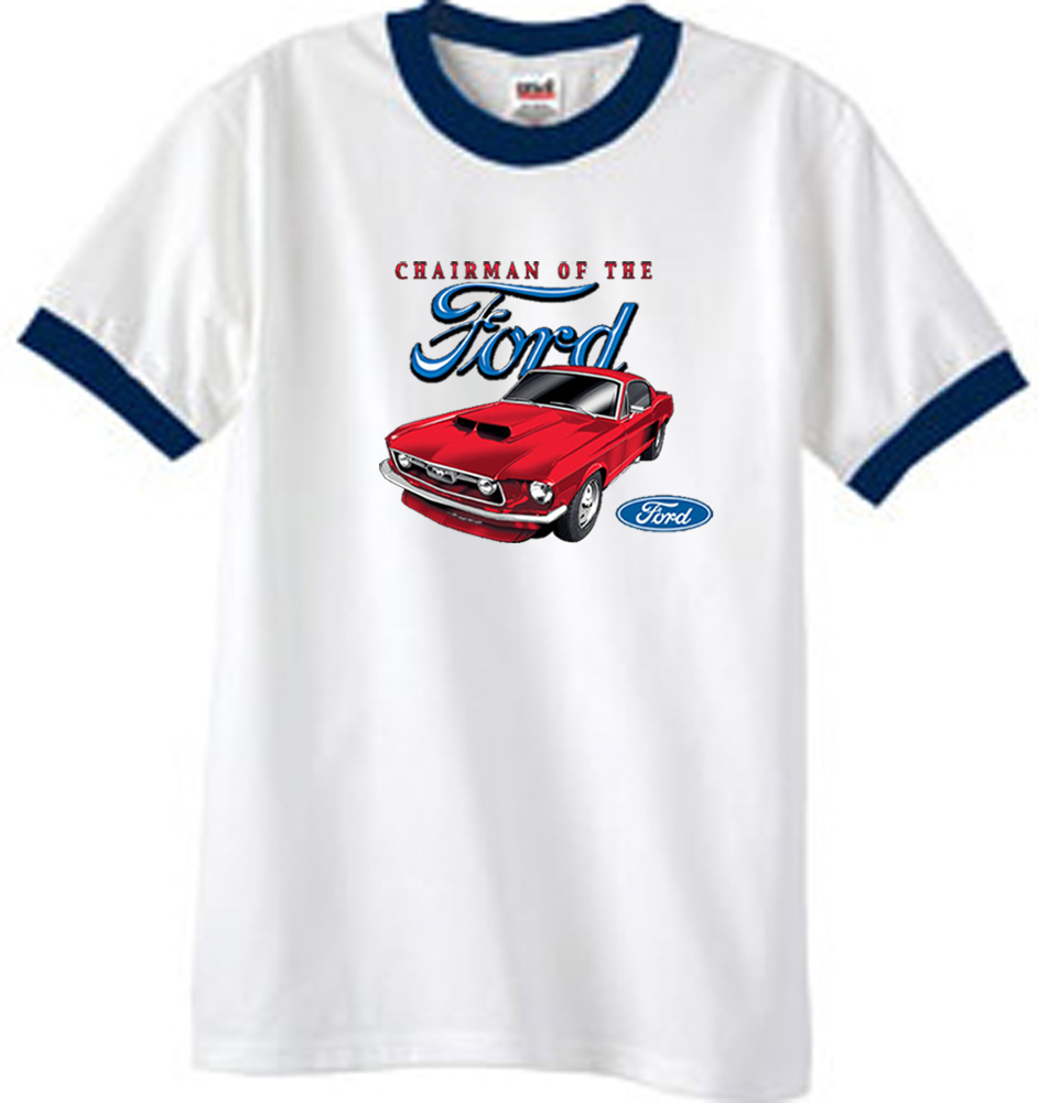 Ford Mustang Ringer T-Shirt - Chairman Of The Ford Adult White/Navy