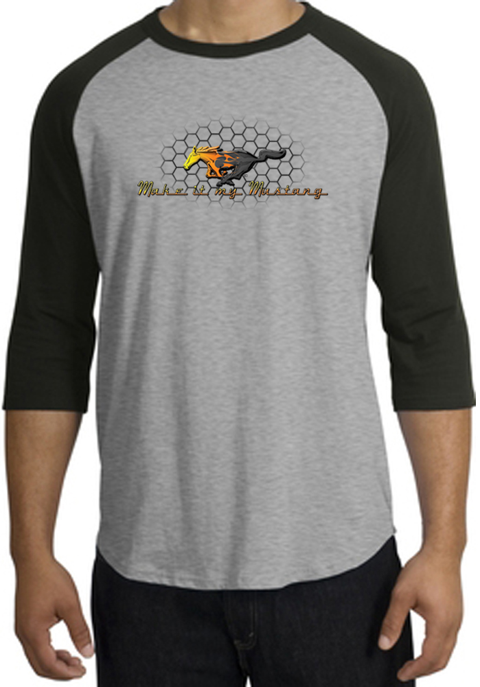 Ford Mustang Raglan Shirt - Make It My Grill Heather Grey/Black TeeFord Mustang Raglan Shirt - Make It My Grill Heather Grey/Black Tee