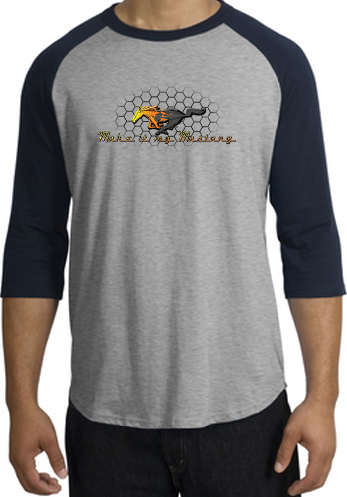 Ford Mustang Raglan Shirt - Make It My Grill Heather Grey/Navy TeeFord Mustang Raglan Shirt - Make It My Grill Heather Grey/Navy Tee