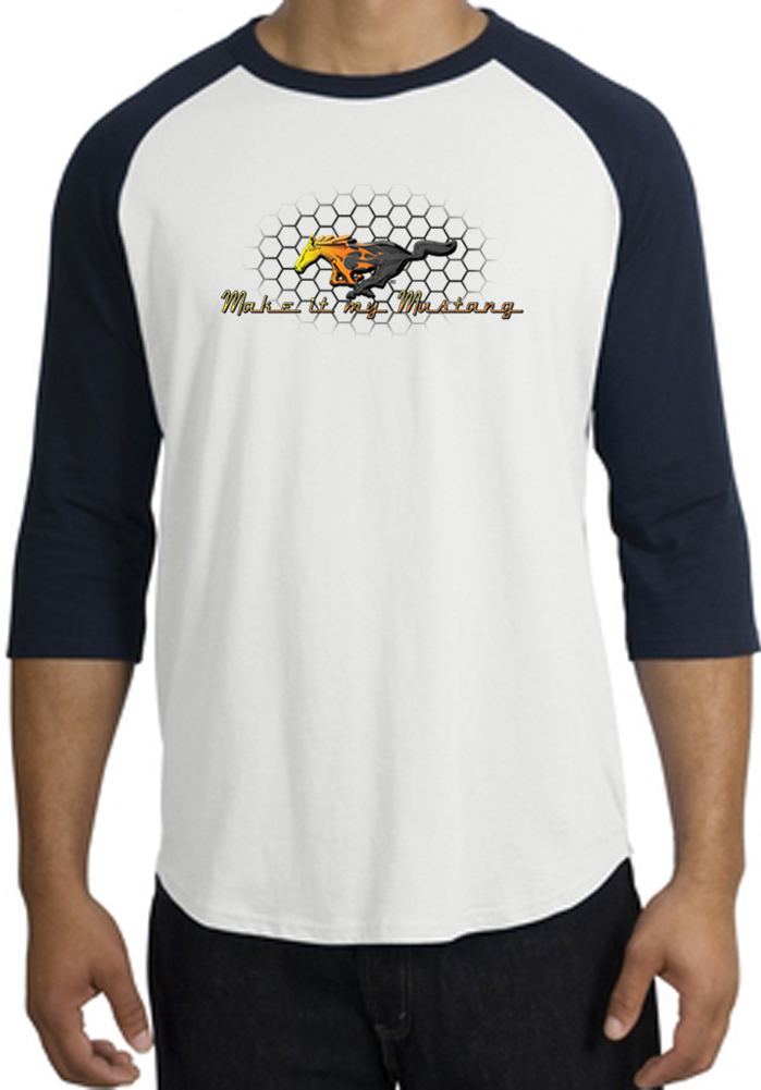 Ford Mustang Raglan Shirt - Make It My Mustang Grill White/Navy TeeFord Mustang Raglan Shirt - Make It My Mustang Grill White/Navy Tee