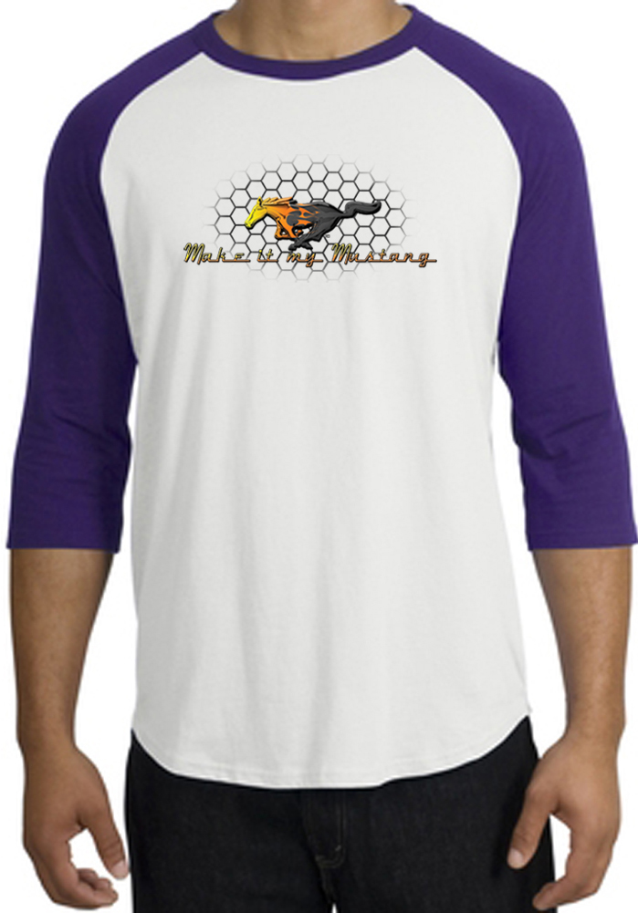 Ford Mustang Raglan Shirt - Make It My Mustang Grill White/Purple TeeFord Mustang Raglan Shirt - Make It My Mustang Grill White/Purple Tee