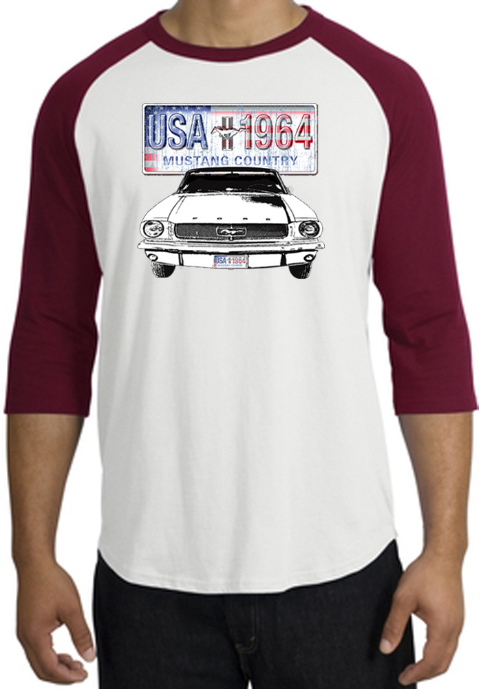 Ford Mustang Shirt USA 1964 Country Raglan Tee White/CardinalFord Mustang Shirt USA 1964 Country Raglan Tee White/Cardinal