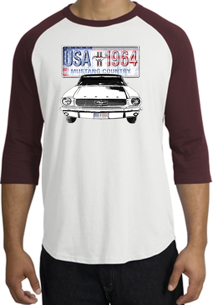 Ford Mustang Shirt USA 1964 Country Raglan Shirt White/Maroon