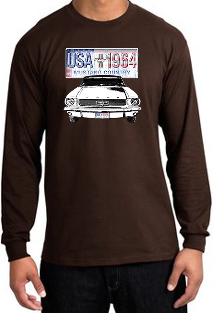 Ford Mustang Long Sleeve Shirt - USA 1964 Country Adult Brown T-ShirtFord Mustang Long Sleeve Shirt - USA 1964 Country Adult Brown T-Shirt