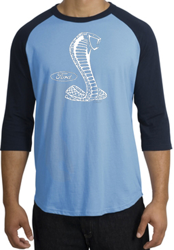 Ford Mustang Cobra Raglan T-shirt - Adult Carolina Blue/Navy ShirtFord Mustang Cobra Raglan T-shirt - Adult Carolina Blue/Navy Shirt