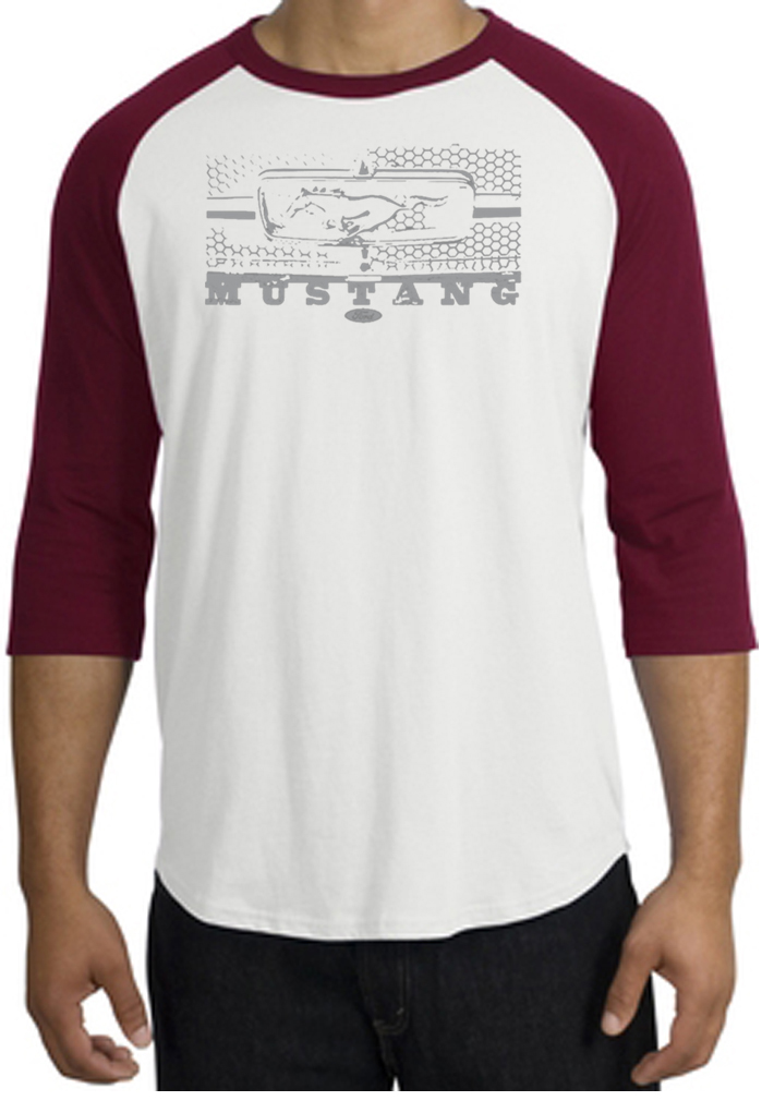 Ford Mustang Raglan T-Shirt Honeycomb Grille White/Cardinal ShirtFord Mustang Raglan T-Shirt Honeycomb Grille White/Cardinal Shirt