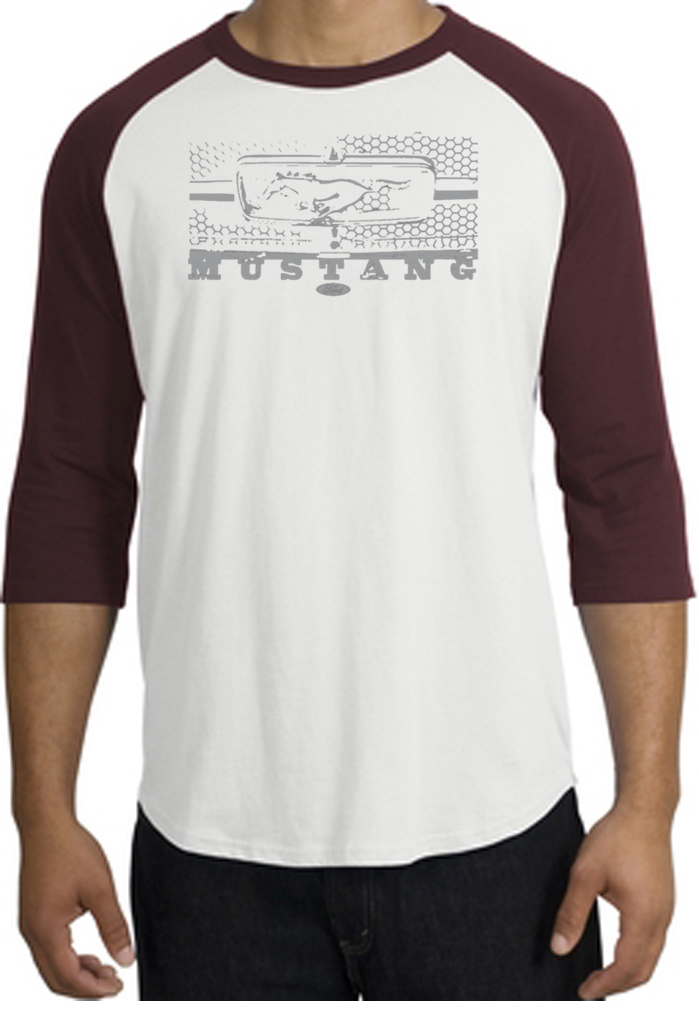 Ford Mustang Raglan T-Shirt Legend Honeycomb Grille White/Maroon ShirtFord Mustang Raglan T-Shirt Legend Honeycomb Grille White/Maroon Shirt