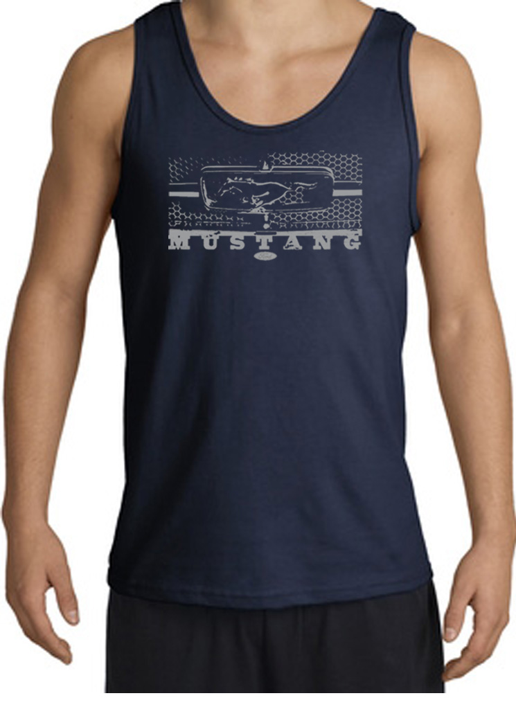 Ford Mustang Tank Top - Legend Honeycomb Grille Adult Navy Tanktop