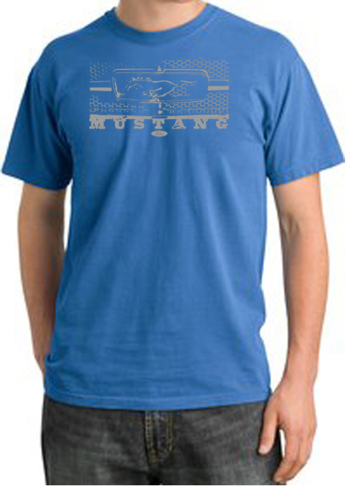 Ford Mustang Pigment Dyed Shirt Honeycomb Grille Medium Blue Tee