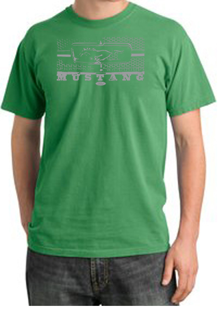Ford Mustang Pigment Dyed T-Shirt Honeycomb Grille Piper Green Tee
