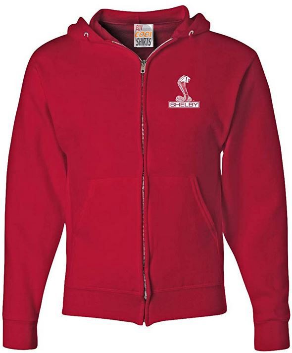 | | Ford Mustang Shelby Cobra Full Zip Hoody (Chest Print)A full zippered hooded sweatshirt featuring the Shelby Cobra logo Officially licensed by Ford Motor Company Cotton/poly blend Front pouch pockets Available in sizes Small through 3XL Note: There is no print on the back of the hoodie ![]() |