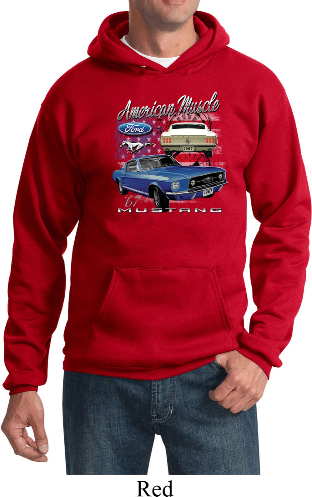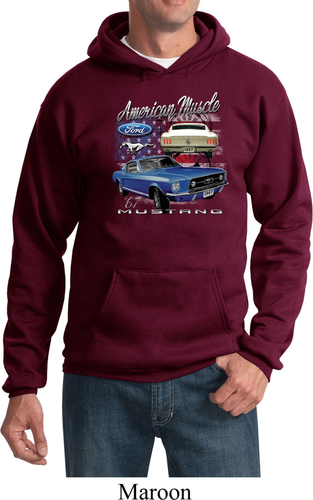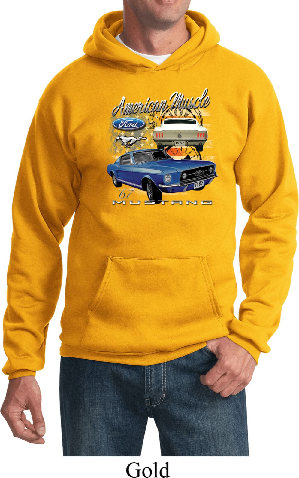| | Ford American Muscle 1967 Mustang HoodyFord American Muscle 1967 Mustang Hoody A 1967 Ford Mustang A cotton/poly blend Available in Small, Medium, Large, XL, 2XL, 3XL & 4XL Also available in colors Ash, Athletic Heather, Black, Chocolate, Dark Green, Gold, Kelly, Maroon, Navy, Orange, Pale Pink, Purple, Red, Royal, Safety Green, and White ![]() |