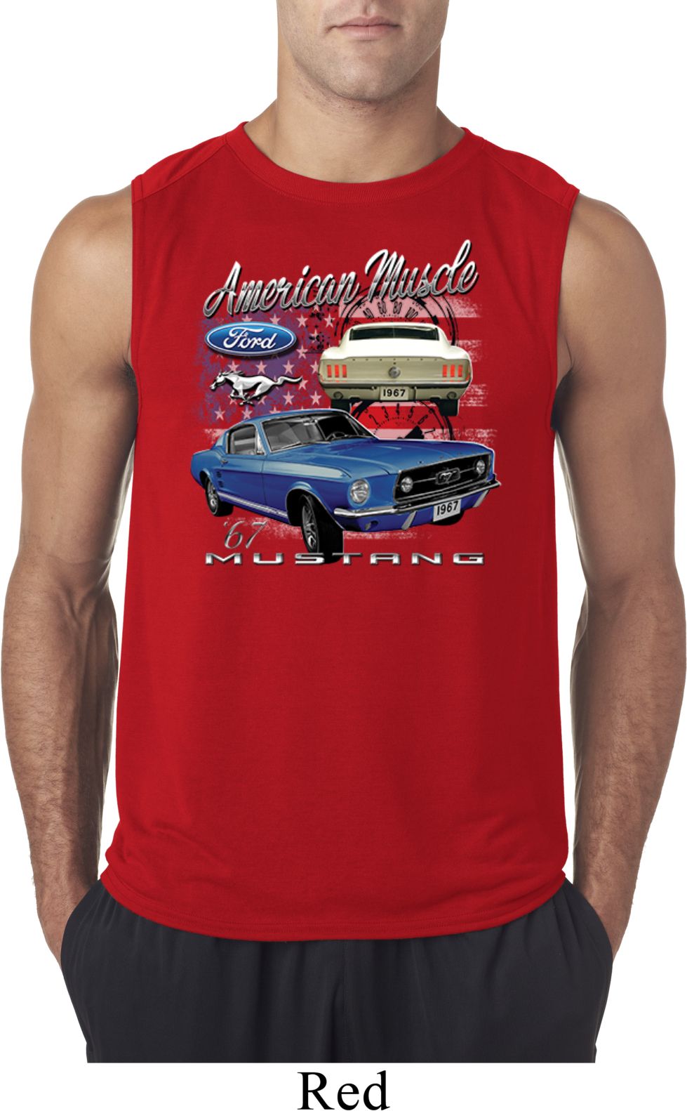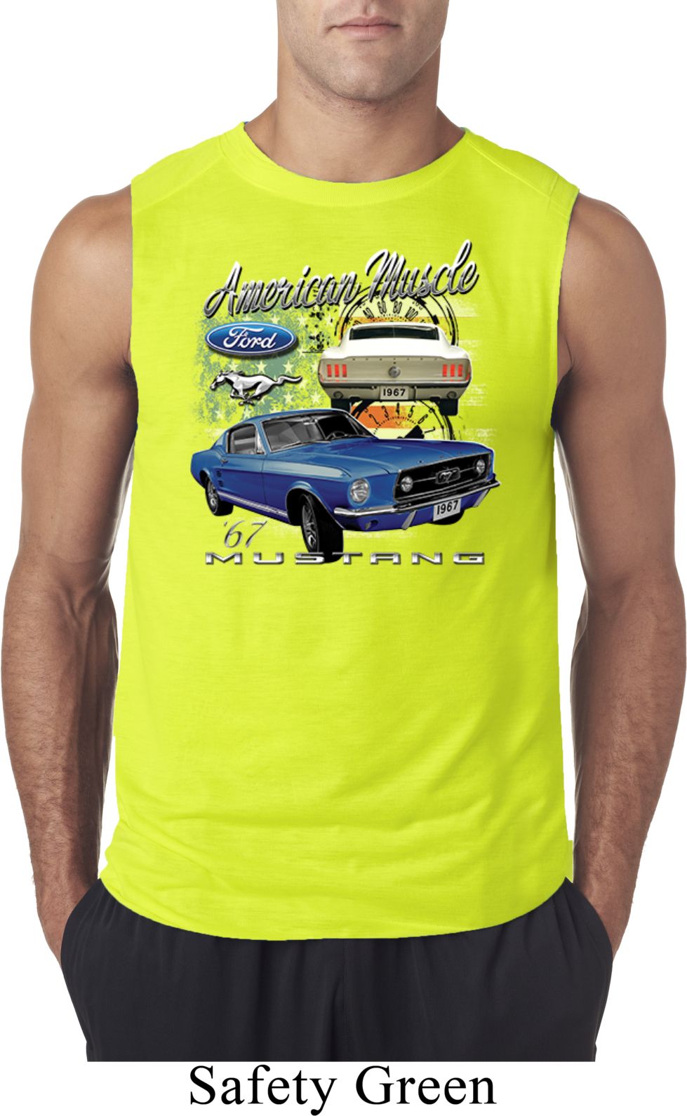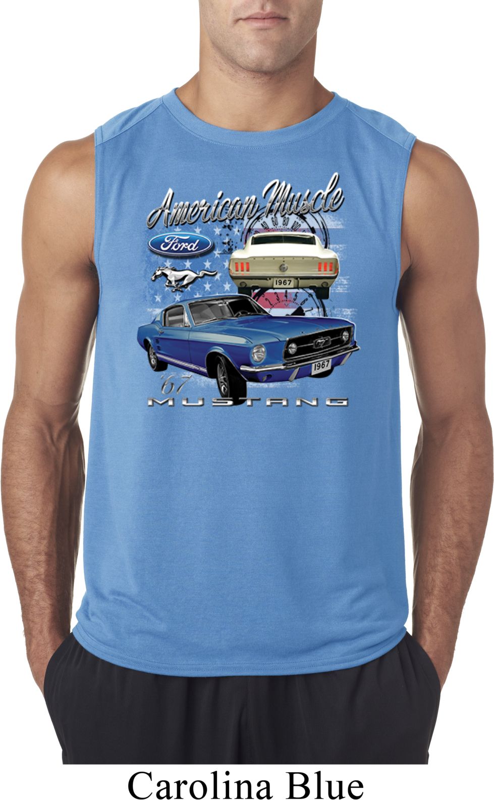 | | Ford American Muscle 1967 Mustang Mens Sleeveless ShirtFord American Muscle 1967 Mustang Mens Sleeveless Shirt A 1967 Ford Mustang 100% polyester Athletic heather is a cotton/poly blend Available in Small, Medium, Large, XL & 2XL Also available in colors Black, Carolina Blue, Charcoal, Navy, Red, Royal, Safety Green, and White |