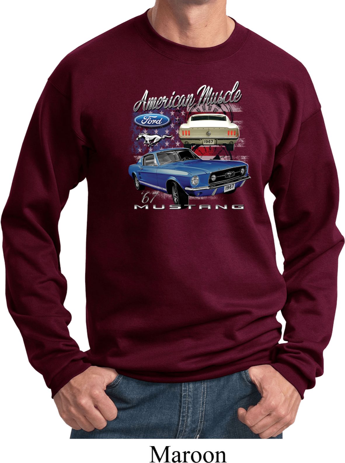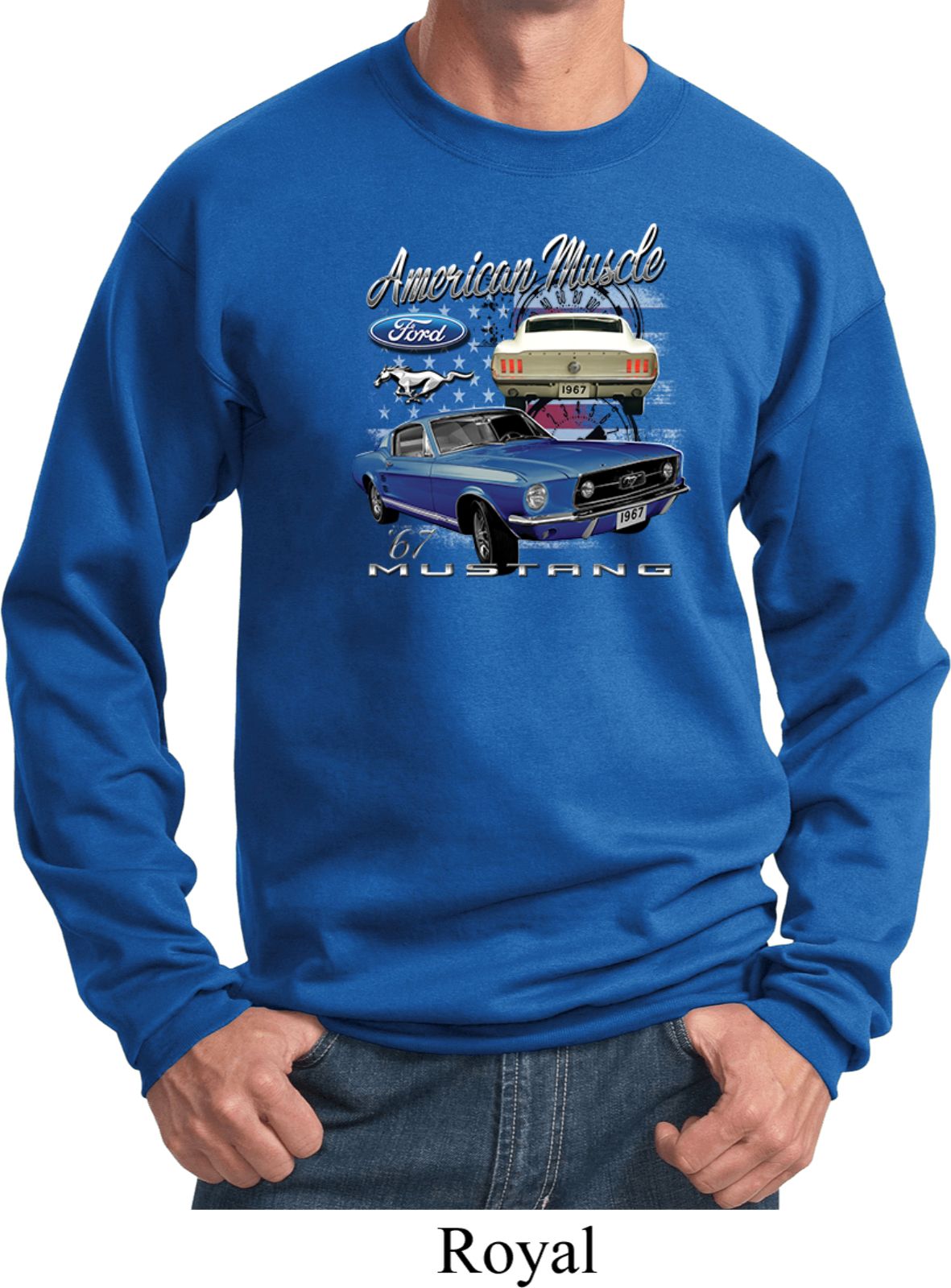 | | Ford American Muscle 1967 Mustang Sweat ShirtFord American Muscle 1967 Mustang Sweat Shirt A 1967 Ford Mustang A cotton/poly blend Available in Small, Medium, Large, XL, 2XL, 3XL & 4XL Also available in colors Ash, Athletic Heather, Black, Cardinal, Chocolate, Dark Green, Gold, Kelly, Maroon, Navy, Orange, Pale Pink, Purple, Red, Royal, Safety Green, and White ![]() |