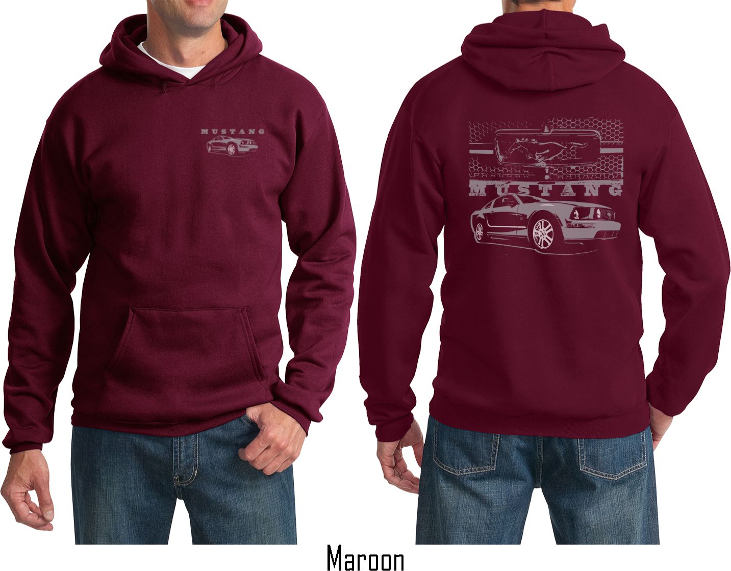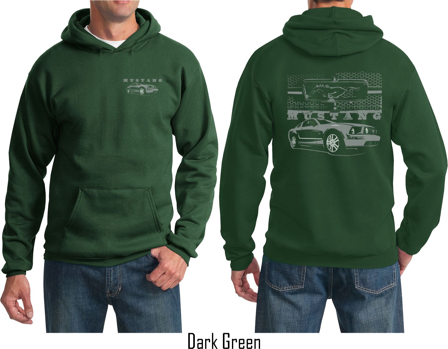 | | Ford Hoodie Mustang with Grill (Front & Back) HoodyA mens hoodie with a kangaroo pouch pocket featuring a Ford Mustang on the front and a Mustang with the infamous Honeycomb Grill on the back. This hoodie makes an awesome gift for all Ford car enthusiasts! Our mens hoodie is made with a blend of cotton/poly. Available in sizes Small through 4XL. Machine wash cold with like colors; dry low heat. ![]() |
