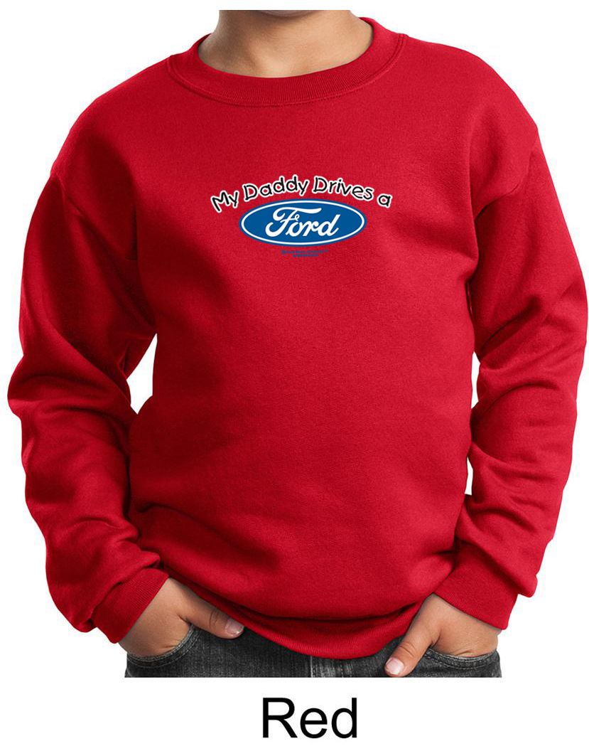 | | Ford Kids Sweatshirt My Daddy Drives a Ford Youth SweatshirtFord Kids Sweatshirt My Daddy Drives a Ford Youth Sweatshirt Officially Licensed Available in Youth Small, Youth Medium, Youth Large & Youth XL Also available in colors Athletic Heather, Black, Navy, Red, Royal, and White ![]() |