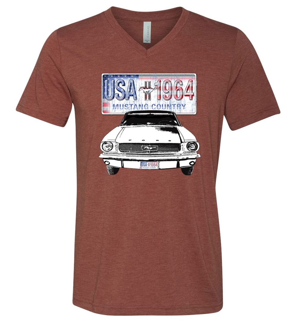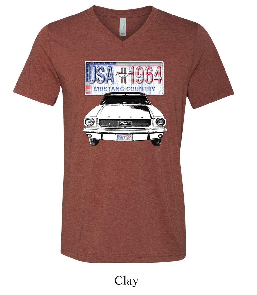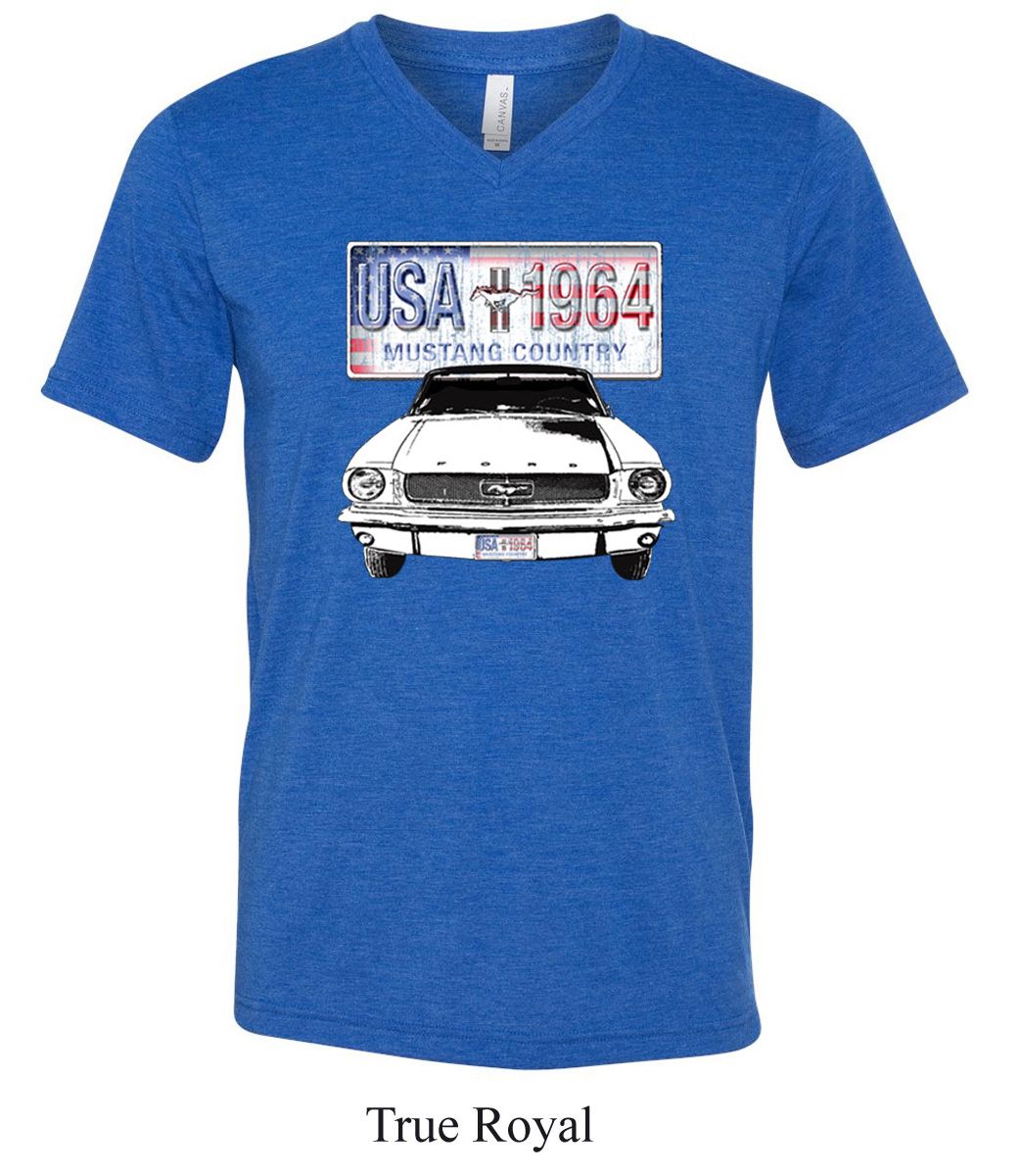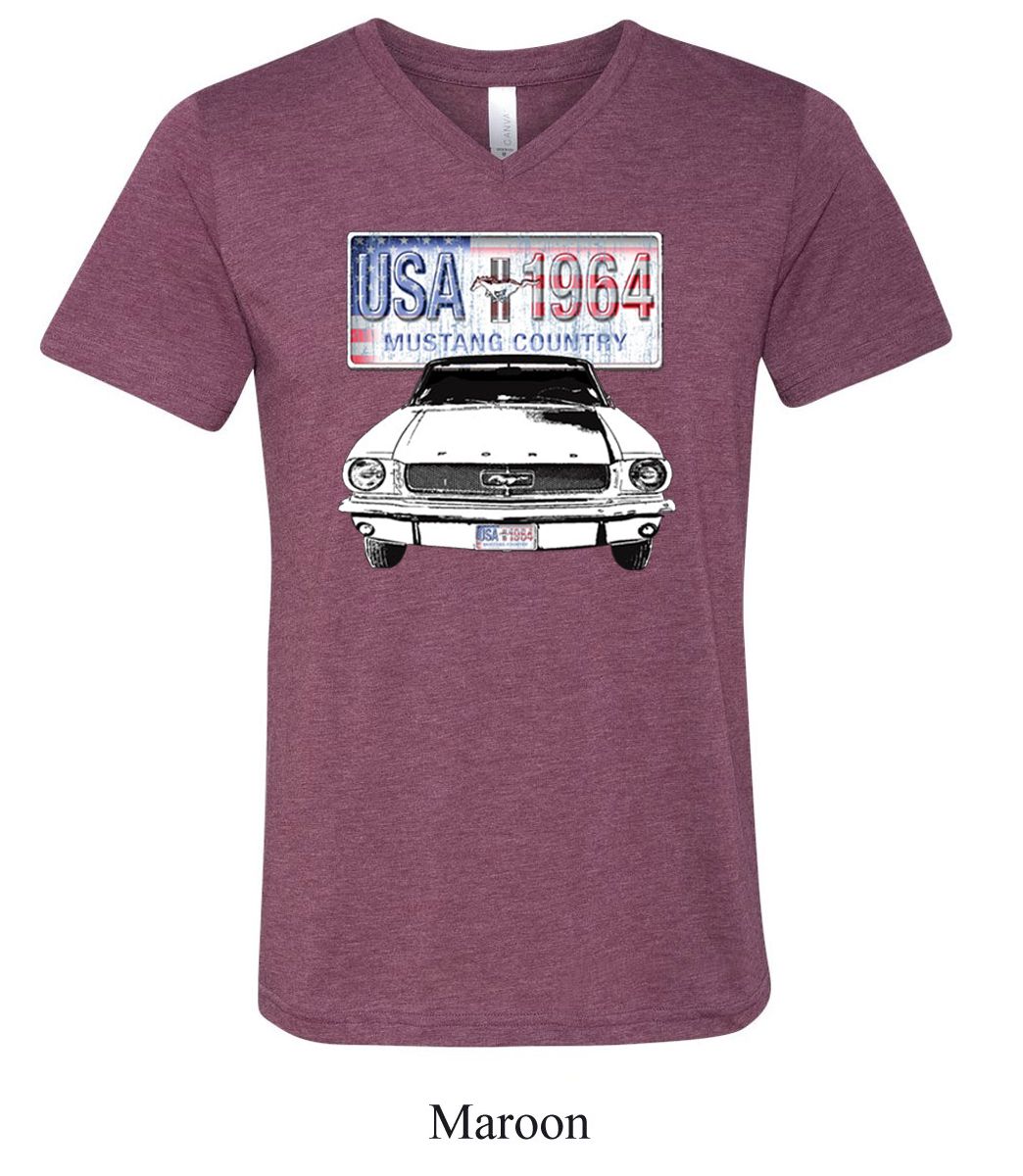 | | Ford Mustang Mens Shirt USA 1964 Country Tri Blend V-neck Tee T-ShirtFord Mustang Mens Shirt USA 1964 Country Tri Blend V-neck Tee T-Shirt A cotton/poly/rayon blend Available in Small, Medium, Large, XL & 2XL Also available in colors Aqua, Blue, Charcoal Black, Clay, Green, Grey, Maroon, Navy, Red, True Royal, and White Fleck |