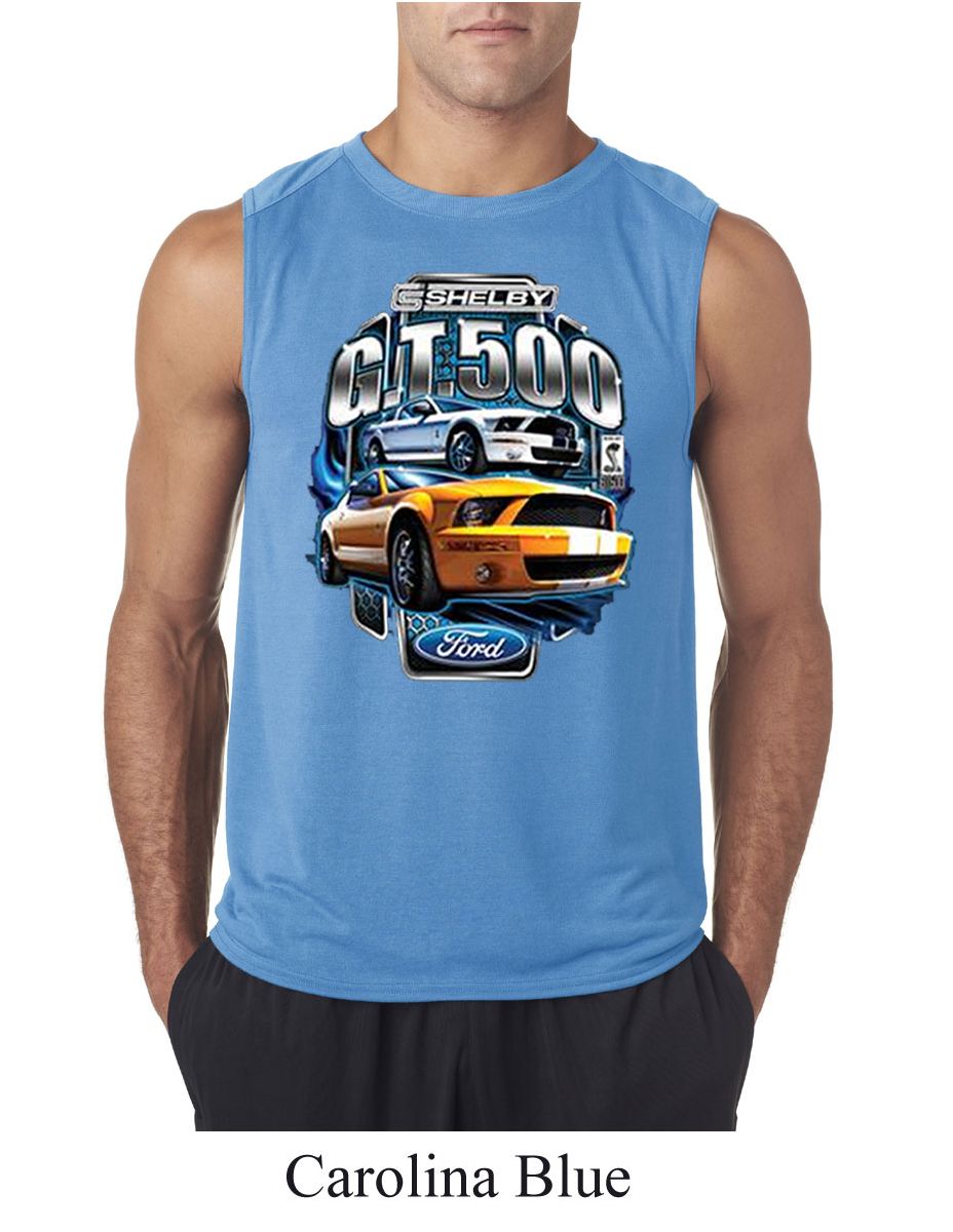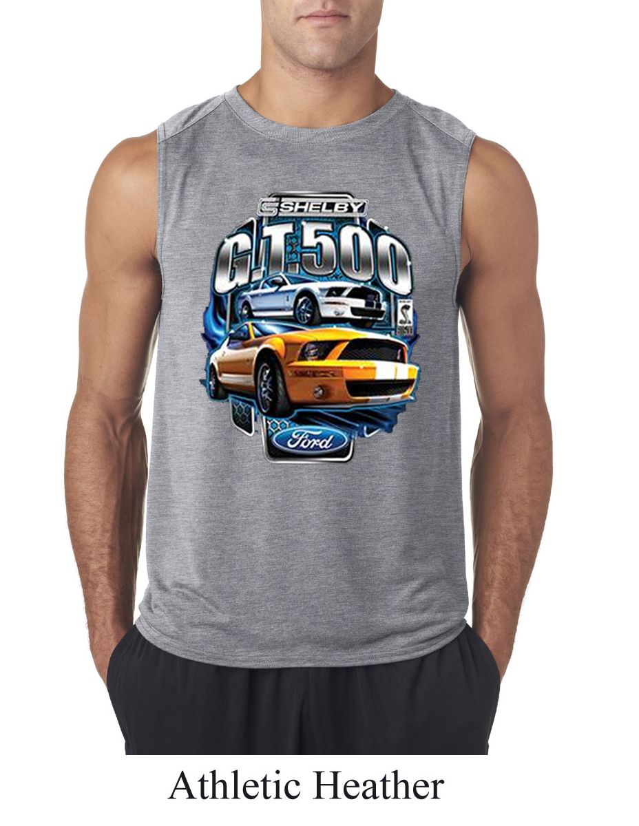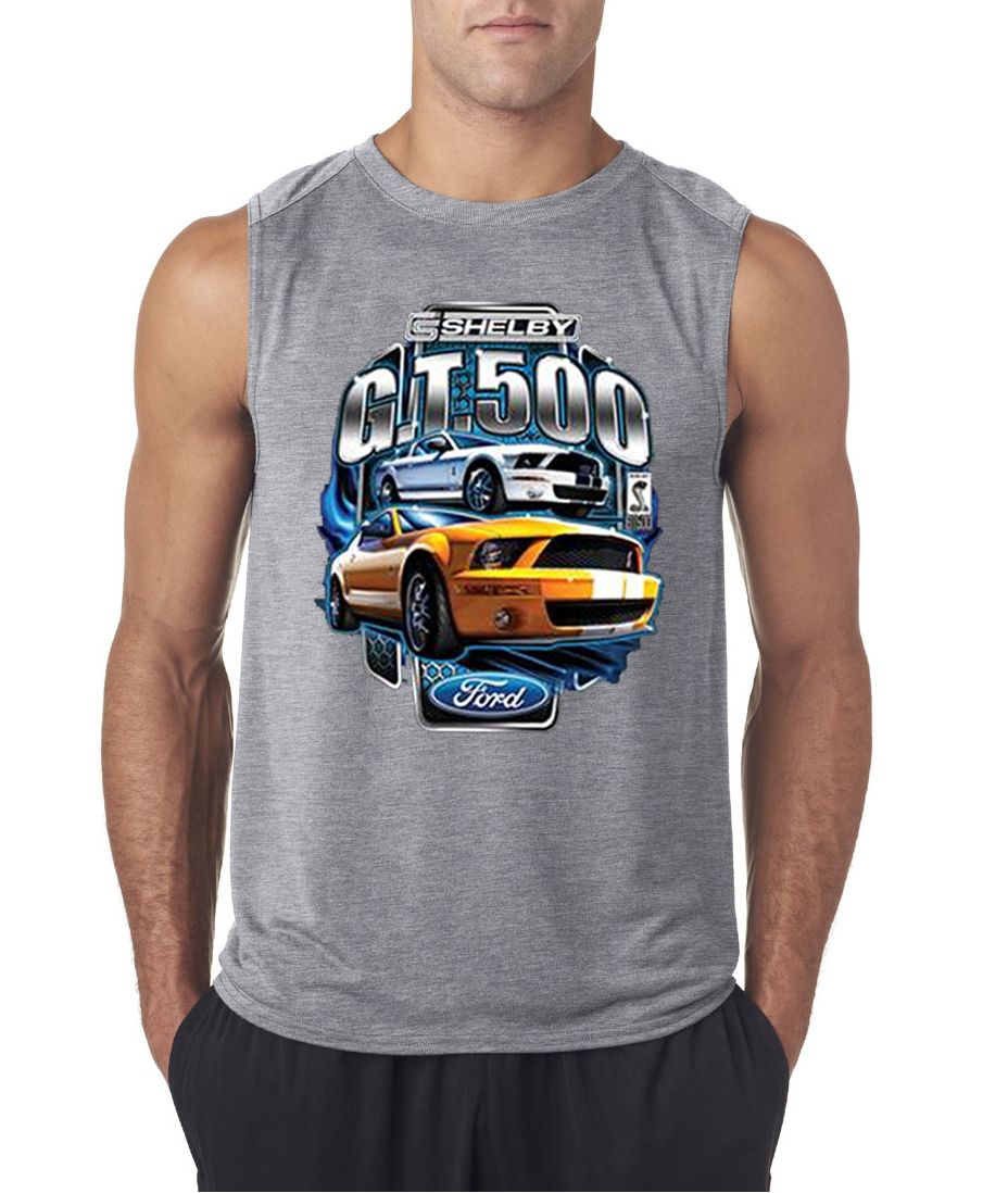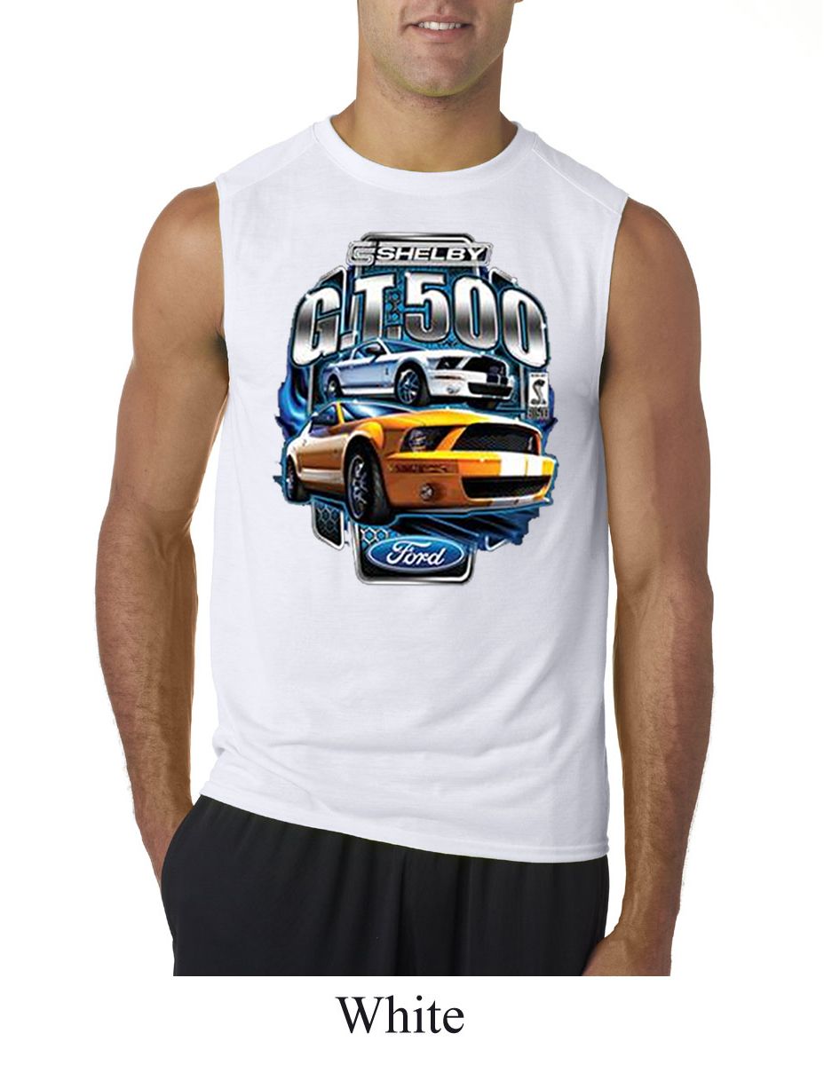 | | Ford Mustang Mens Shirt Yellow White GT500 Sleeveless Tee T-ShirtFord Mustang Mens Shirt Yellow White GT500 Sleeveless Tee T-Shirt 100% polyester Available in Small, Medium, Large, XL & 2XL Also available in colors Athletic Heather, Black, Carolina Blue, Charcoal, Navy, Red, Royal, and White |