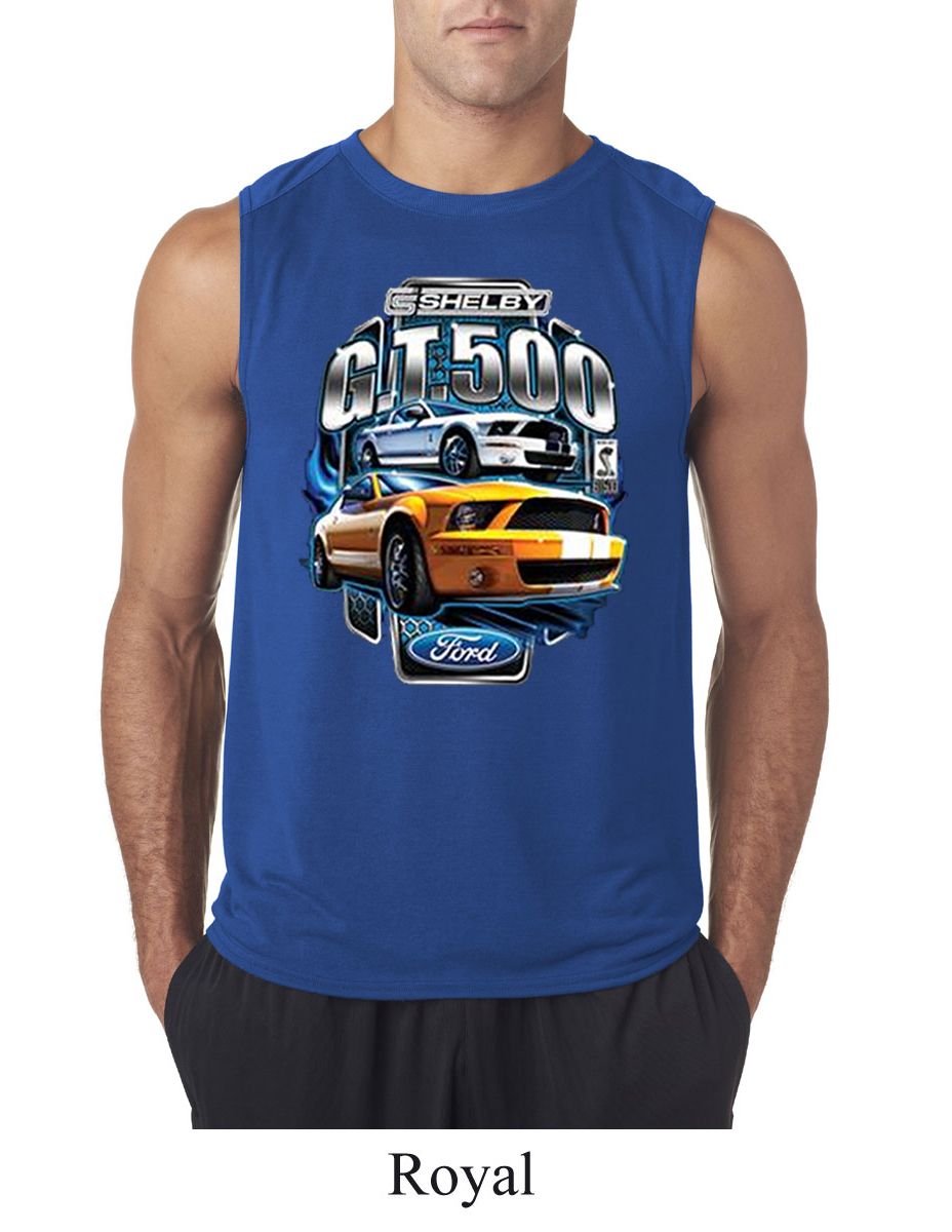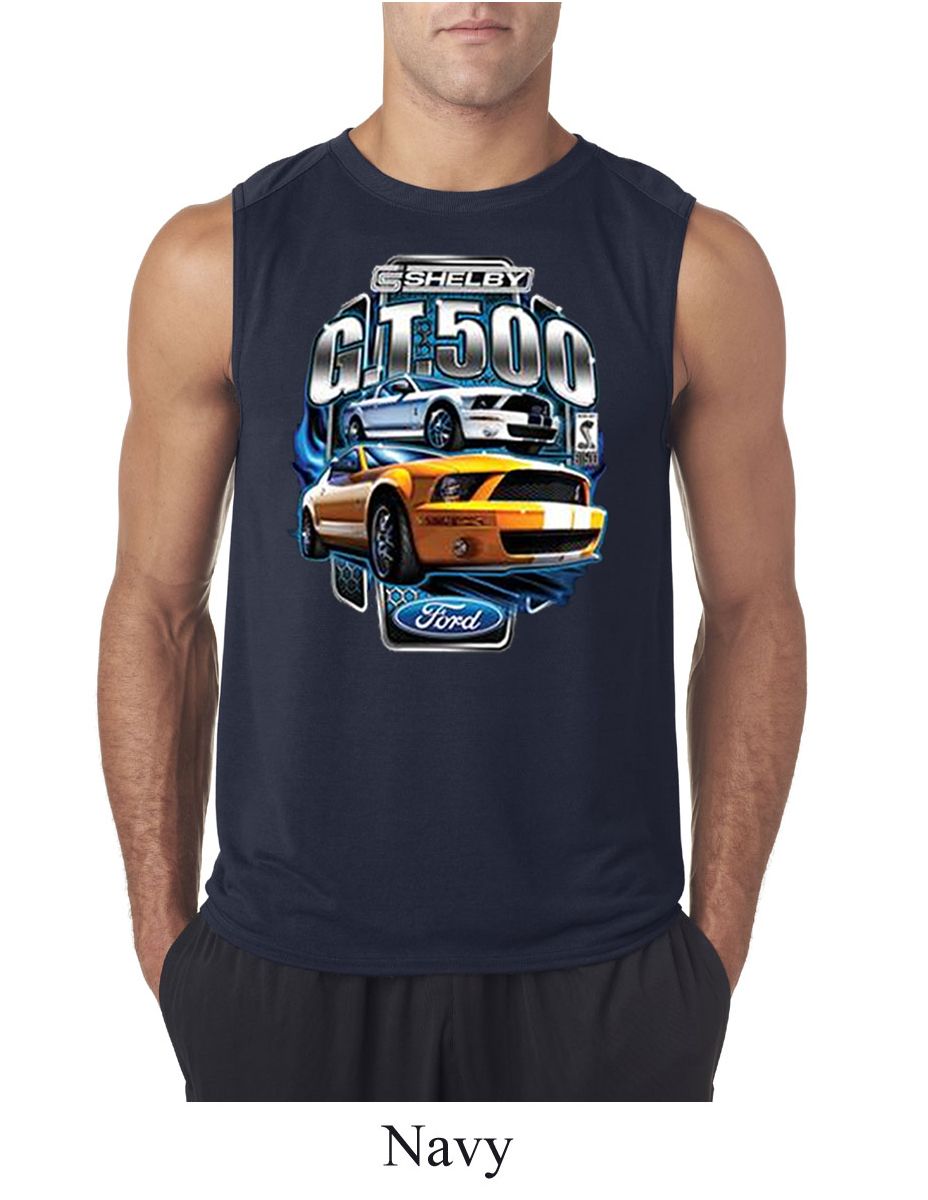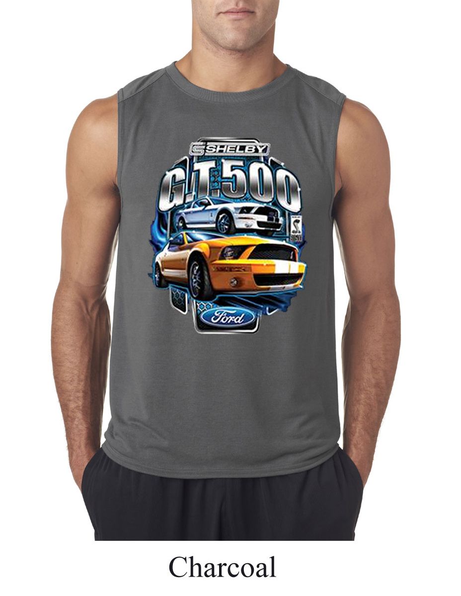 | | Ford Mustang Mens Shirt Yellow White GT500 Sleeveless Tee T-ShirtFord Mustang Mens Shirt Yellow White GT500 Sleeveless Tee T-Shirt 100% polyester Available in Small, Medium, Large, XL & 2XL Also available in colors Athletic Heather, Black, Carolina Blue, Charcoal, Navy, Red, Royal, and White |