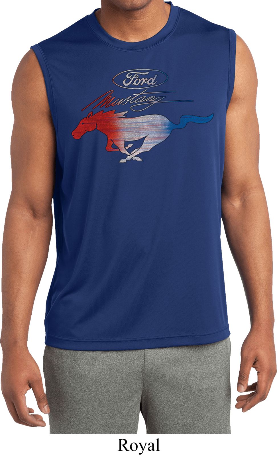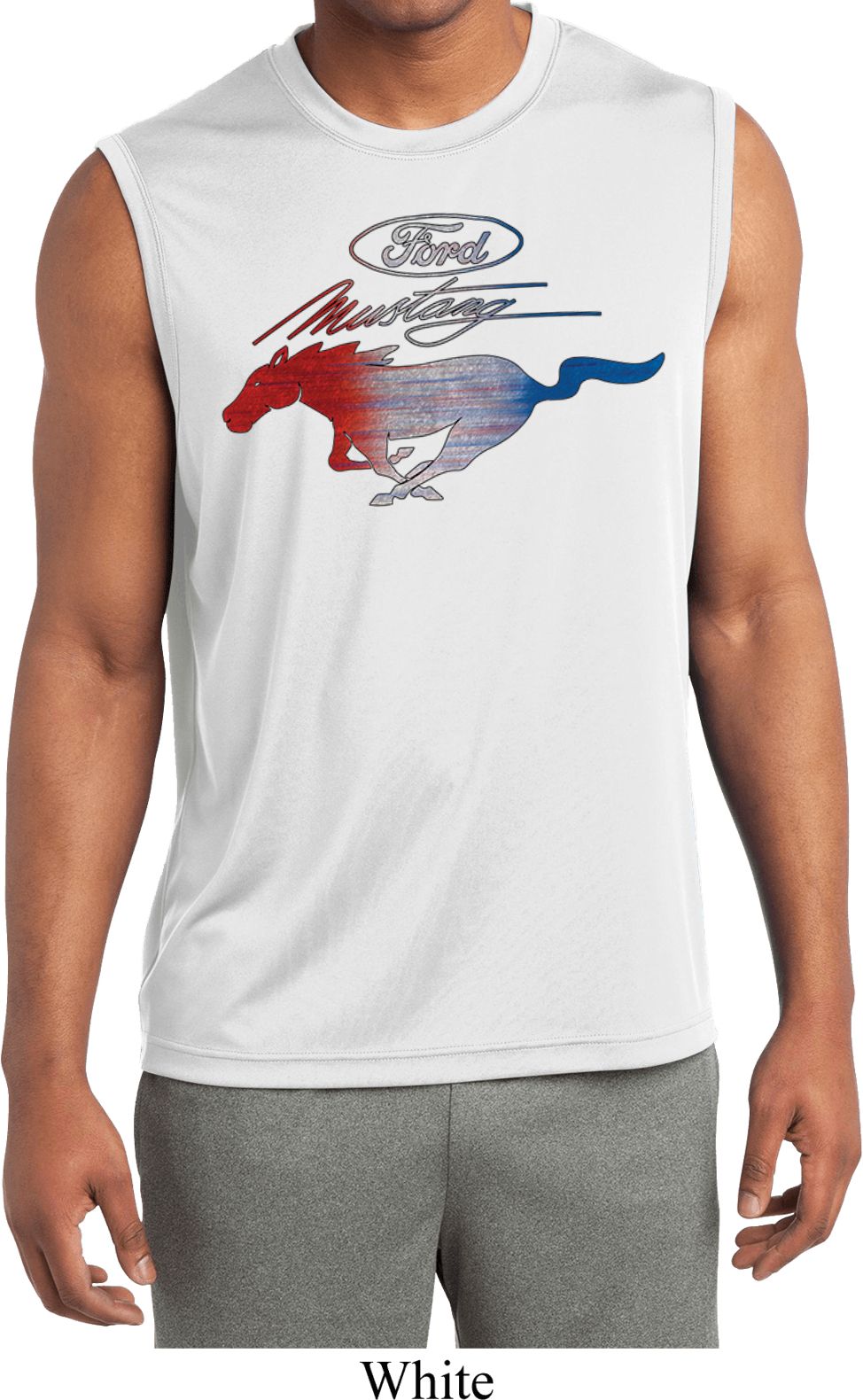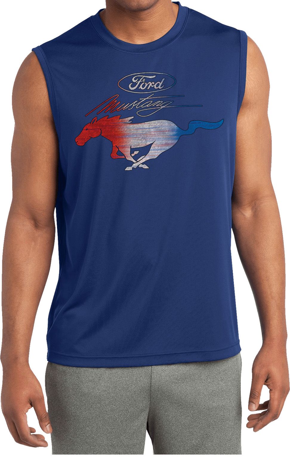 | | Ford Mustang Red White and Blue Dry Wicking Sleeveless ShirtA mens moisture wicking muscle shirt featuring a distressed Ford Mustang Logo in red, white, and blue. Our mens tee is made of 100% polyester. A perfect gift for all Ford Car Enthusiasts! Available in sizes Small through 4XL. Machine wash cold with like colors; dry low heat. ![]() |
