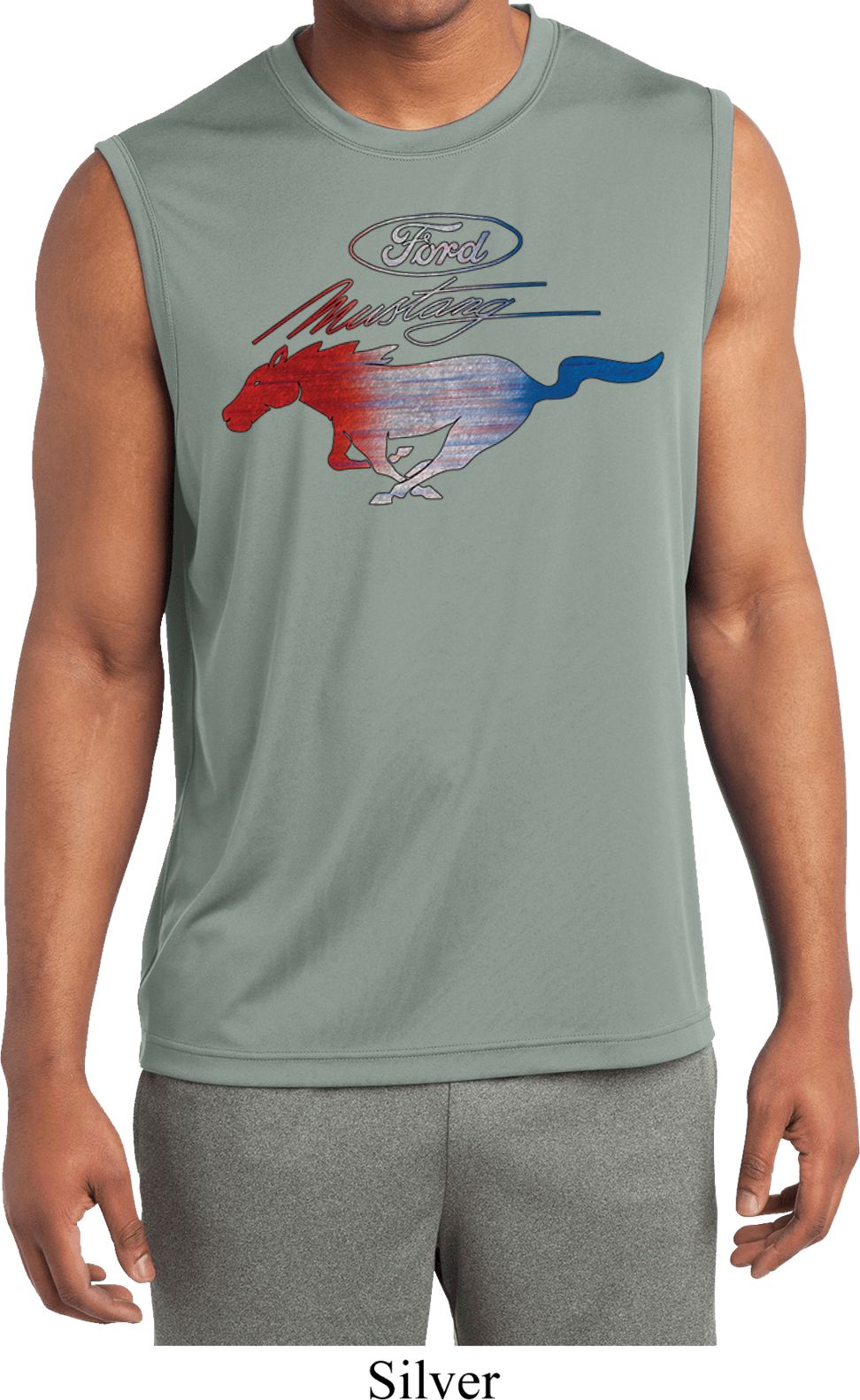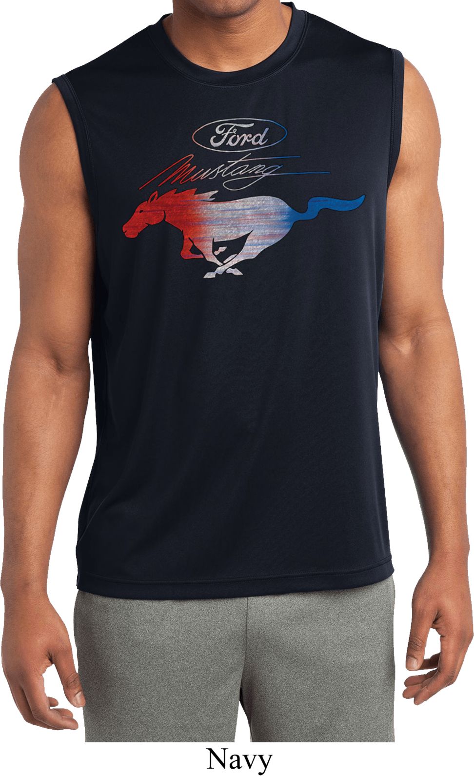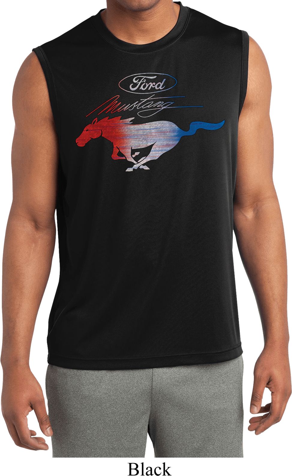 | | Ford Mustang Red White and Blue Dry Wicking Sleeveless ShirtA mens moisture wicking muscle shirt featuring a distressed Ford Mustang Logo in red, white, and blue. Our mens tee is made of 100% polyester. A perfect gift for all Ford Car Enthusiasts! Available in sizes Small through 4XL. Machine wash cold with like colors; dry low heat. ![]() |