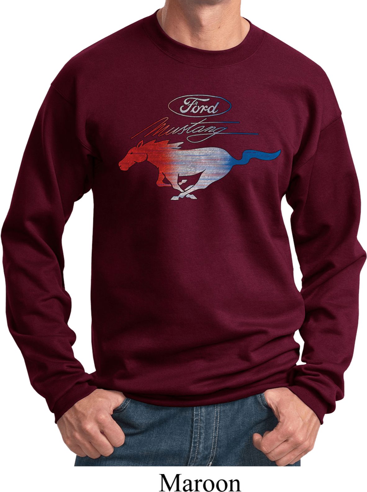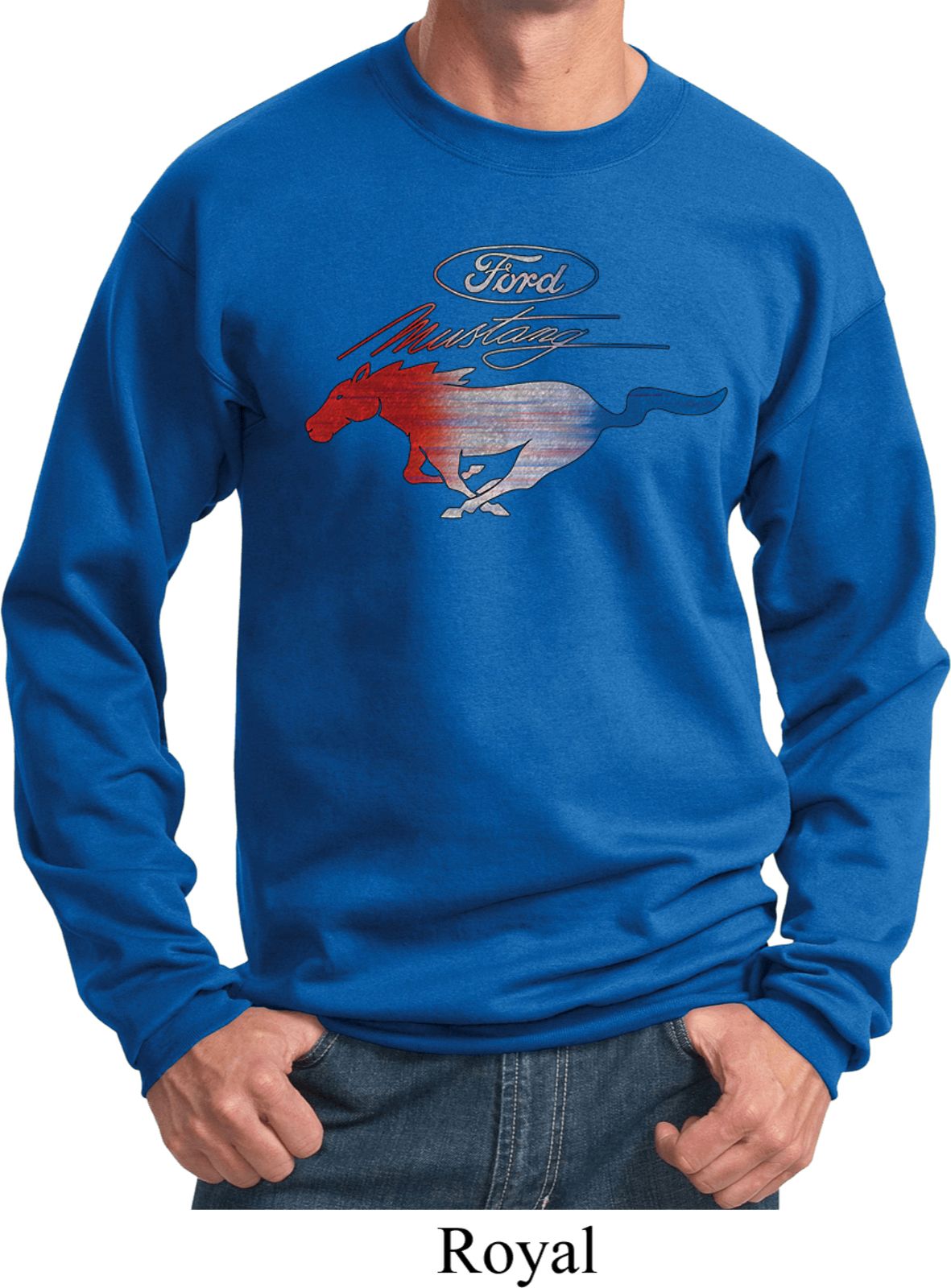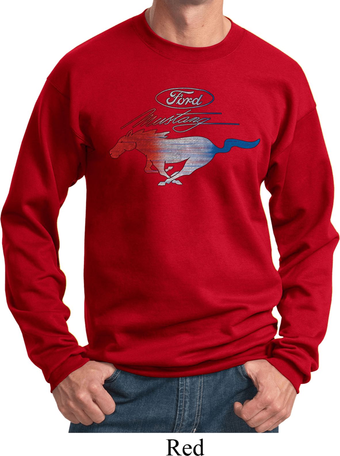 | | Ford Mustang Red White and Blue SweatshirtA mens sweatshirt featuring a distressed Ford Mustang Logo in red, white, and blue. Our mens sweatshirt is made with a blend of cotton/poly. A perfect gift for all Ford Car Enthusiasts! Available in sizes Small through 4XL. Machine wash cold with like colors; dry low heat. ![]() |