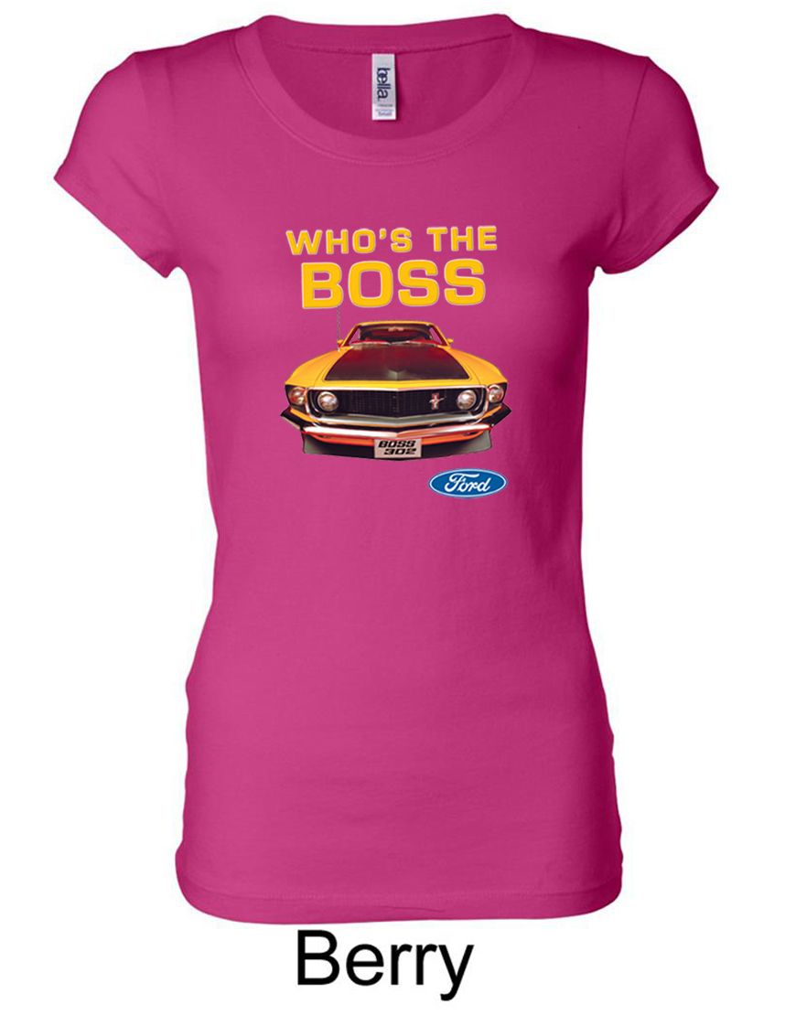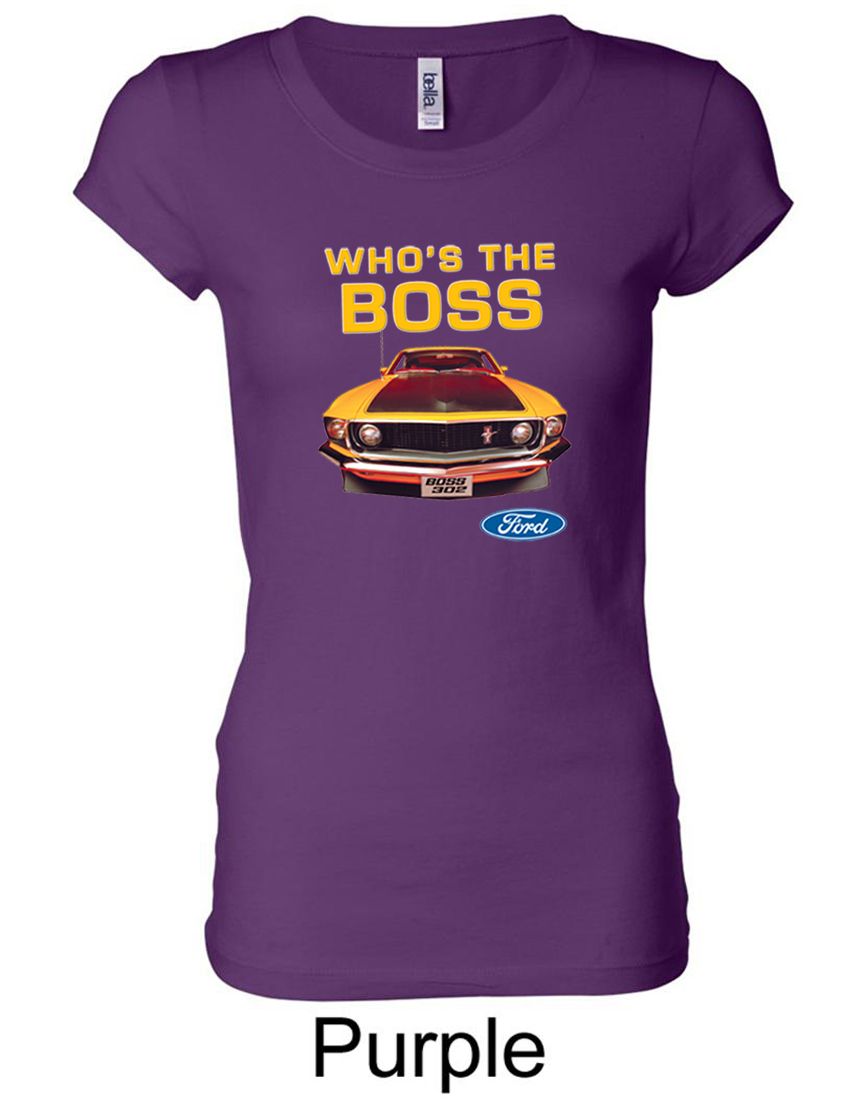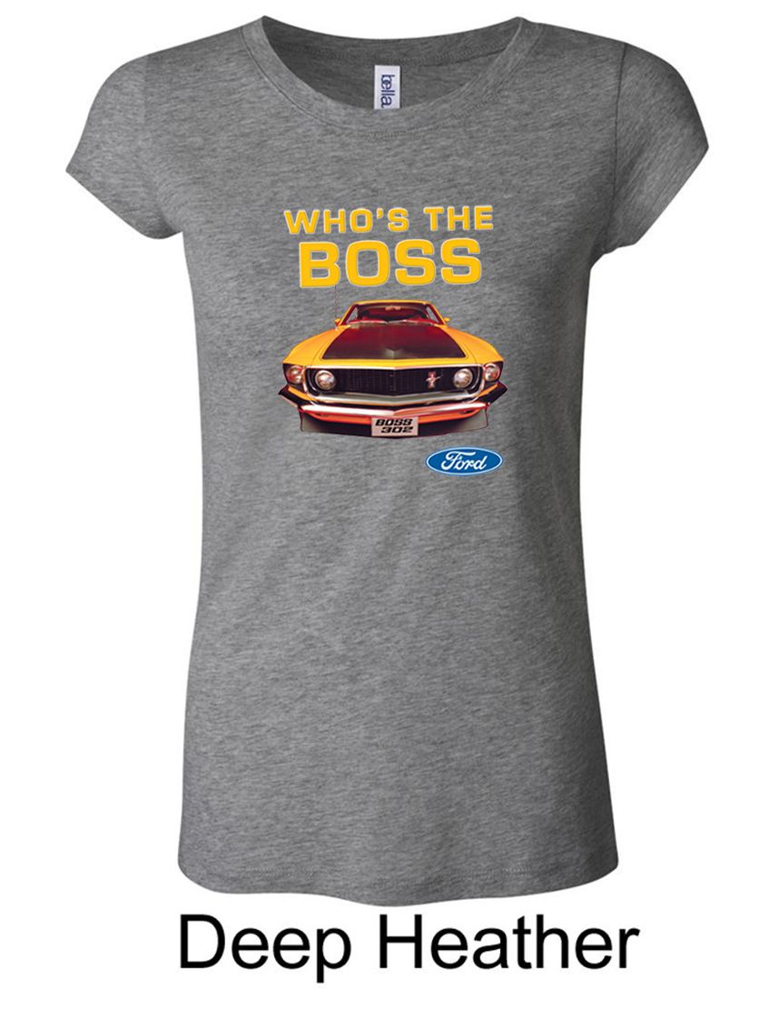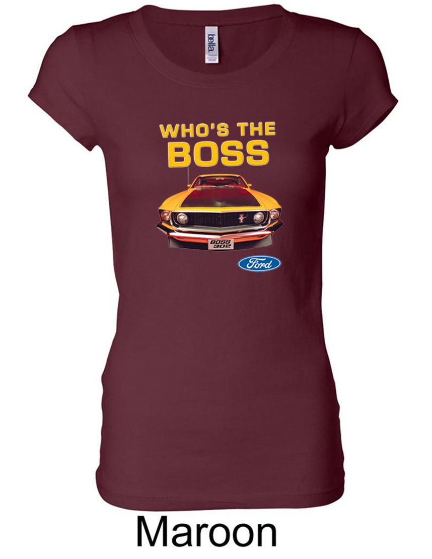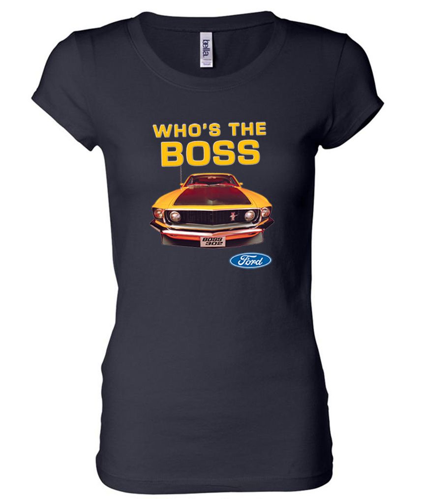 | | Ford Mustang Shirt Who's The Boss 302 Ladies Longer Length Tee T-ShirtAvailable in Ladies Small, Ladies Medium, Ladies Large, Ladies XL & Ladies 2XL Also available in colors Berry, Black, Chocolate, Deep Heather, Leaf, Maroon, Midnight, Purple, Red, and True Royal ![]() |