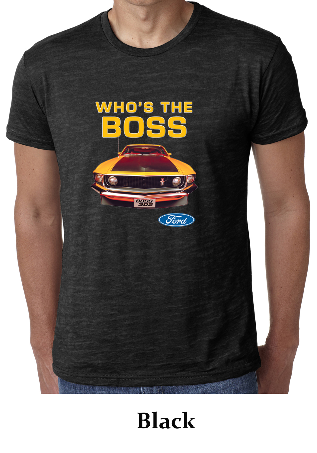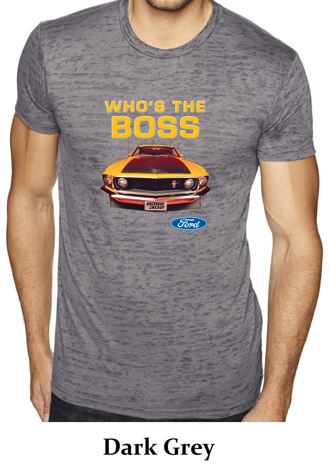 Ford Mustang Shirt Who's The Boss 302 Mens Burnout Tee T-Shirt
