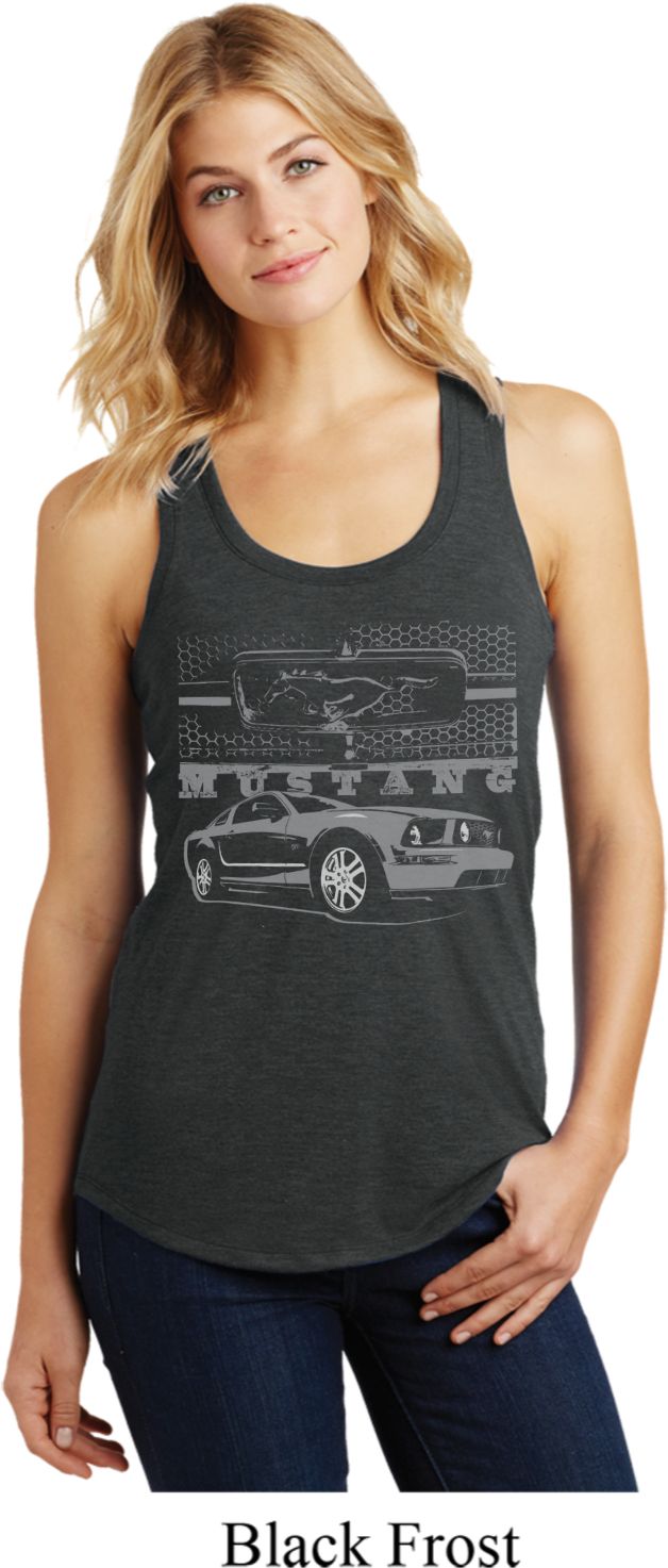 | | Ford Mustang with Grill Ladies Racerback Tank TopFord Mustang with Grill Ladies Racerback Tank Top The Mustang honeycomb grill A cotton/poly/rayon blend Available in Ladies Small, Ladies Medium, Ladies Large, Ladies XL, Ladies 2XL, Ladies 3XL & Ladies 4XL Also available in colors Black Frost, Navy Frost, and Purple Frost |
