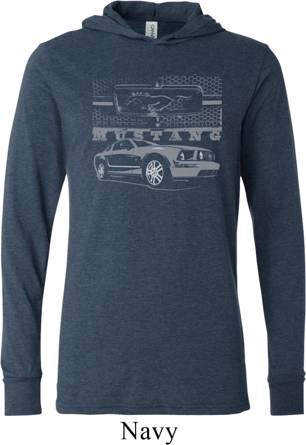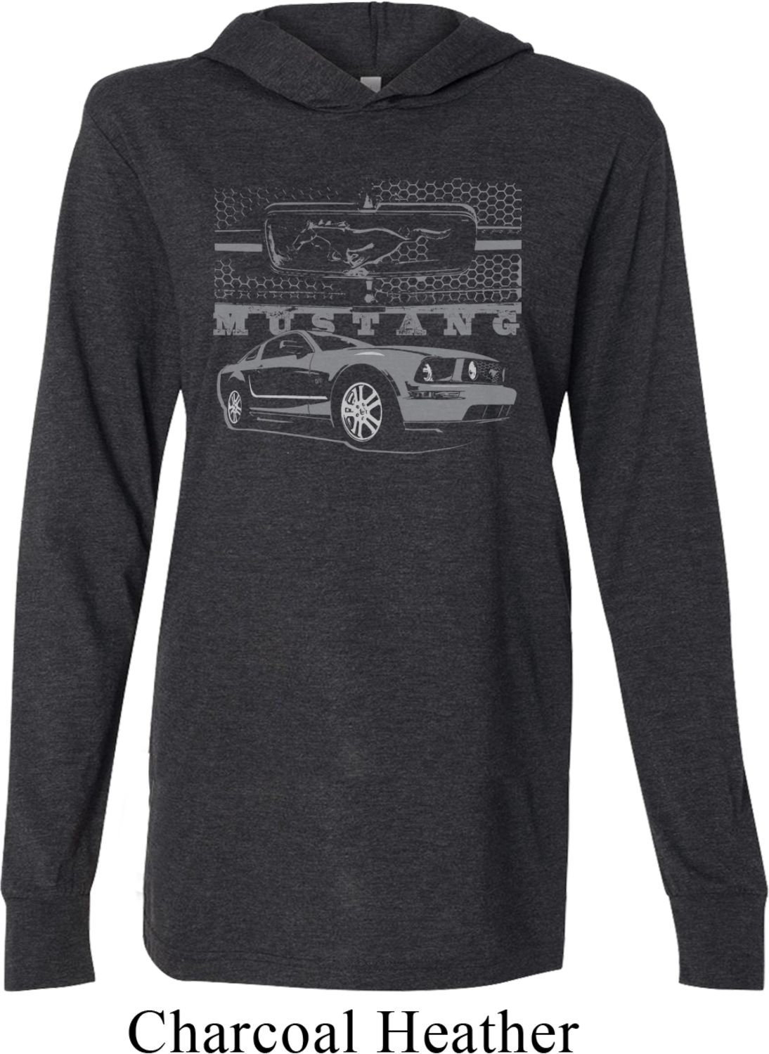 | | Ford Mustang with Grill Lightweight Hoodie TeeFord Mustang with Grill Lightweight Hoodie Tee The Mustang honeycomb grill 100% cotton Deep heather is a cotton/poly blend Available in Small, Medium, Large, XL & 2XL Also available in colors Asphalt, Black, Charcoal Heather, and Navy |