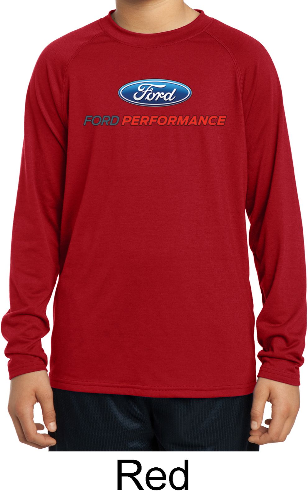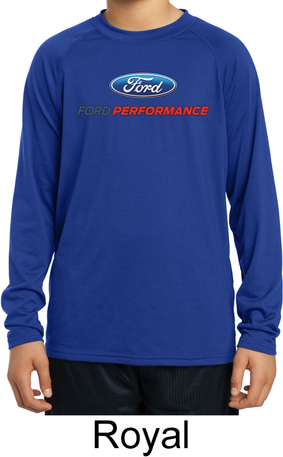 | | Ford Performance Parts Kids Dry Wicking Long Sleeve ShirtFord Performance Parts Kids Dry Wicking Long Sleeve Shirt A popular design for Ford racing Poly/Spandex Available in Youth Small, Youth Medium, Youth Large & Youth XL Also available in colors Black, Heather Grey, Navy, Red, Royal, and White |