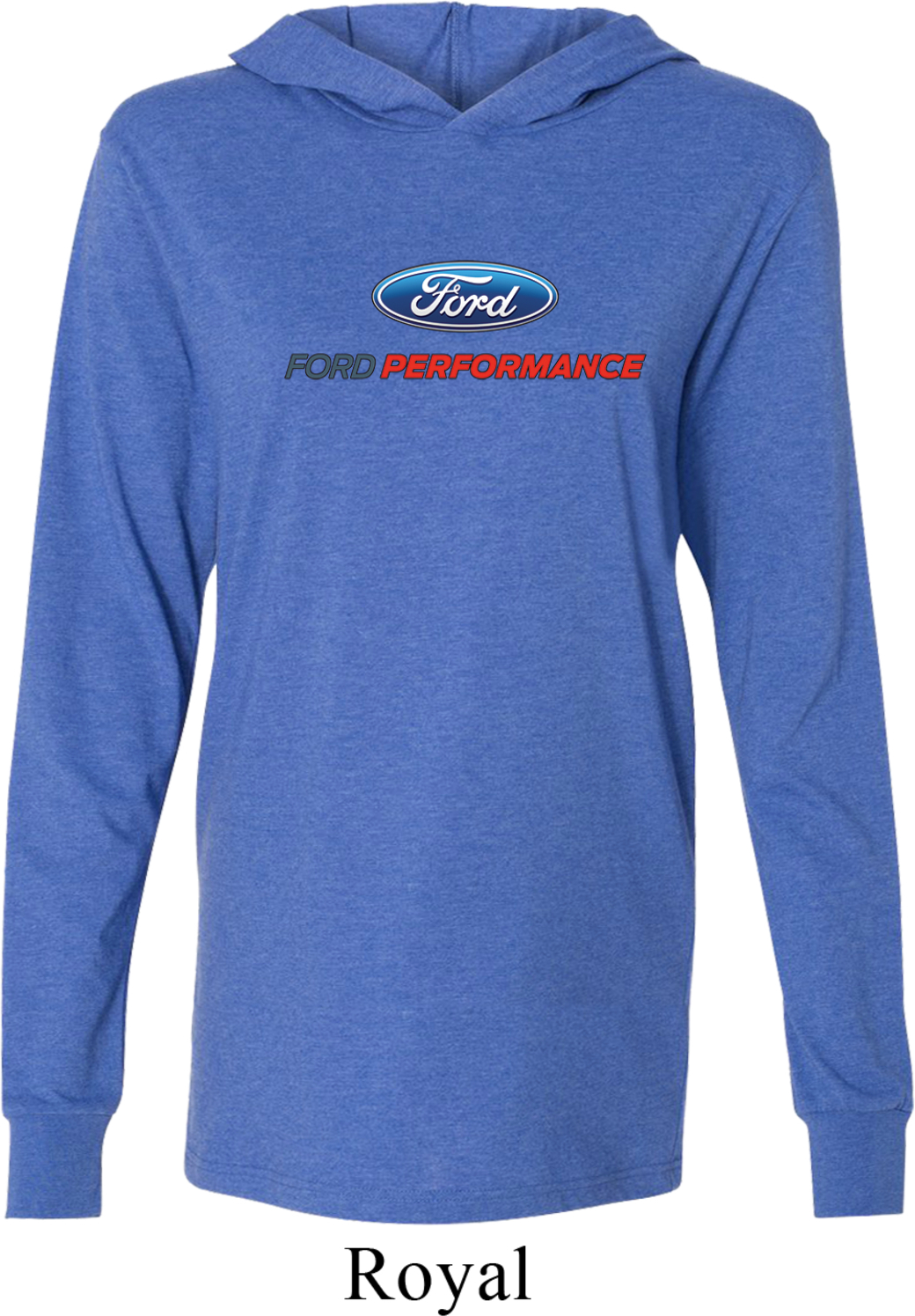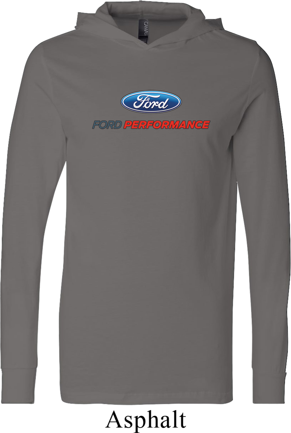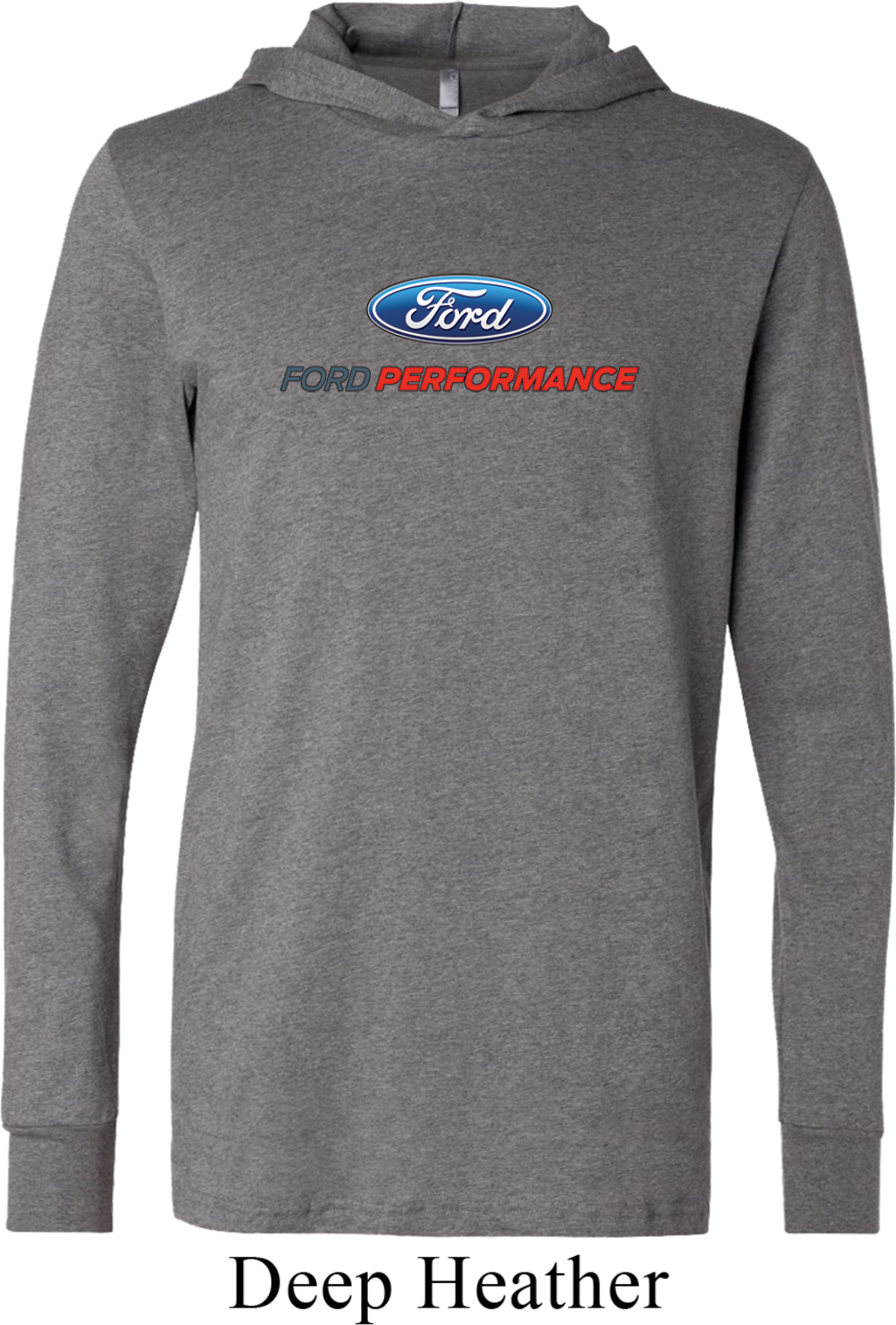 | | Ford Performance Parts Lightweight Hoodie TeeFord Performance Parts Lightweight Hoodie Tee A popular design for Ford racing 100% cotton Deep heather is a cotton/poly blend Available in Small, Medium, Large, XL & 2XL Also available in colors Asphalt, Black, Charcoal Heather, Deep Heather, Grey Charcoal, Royal, and White |