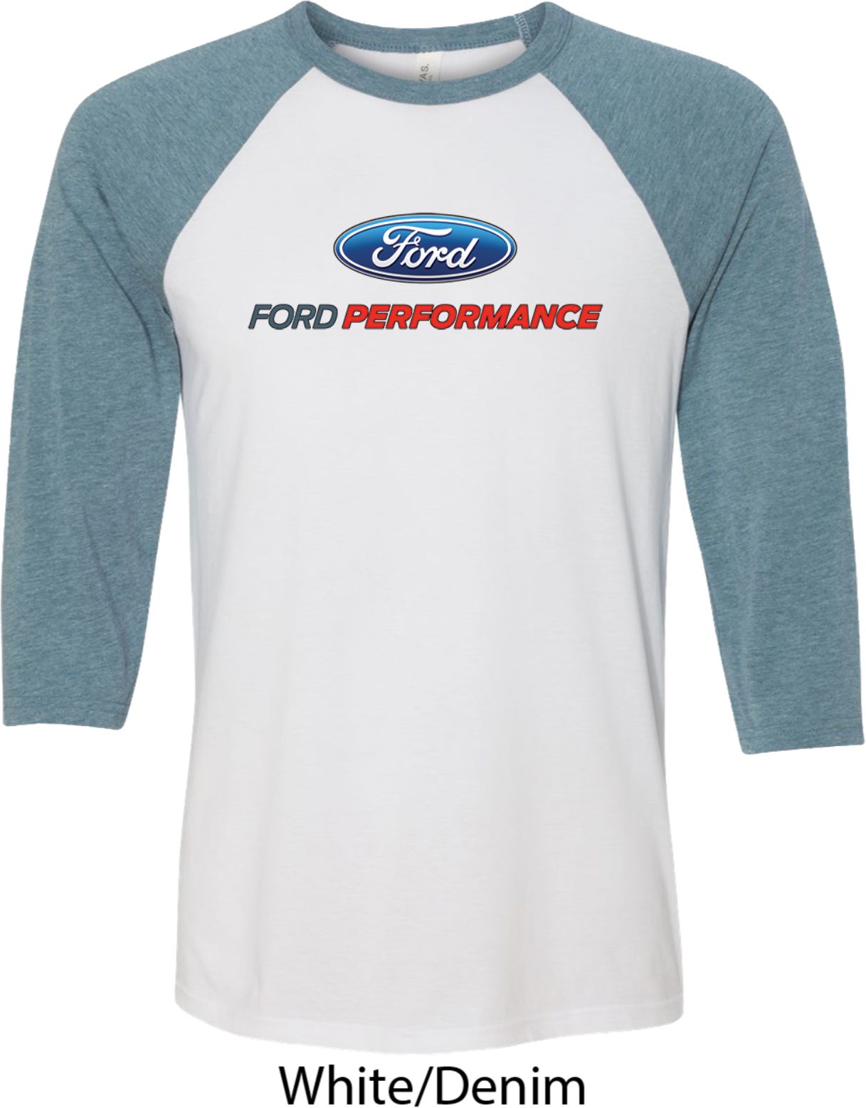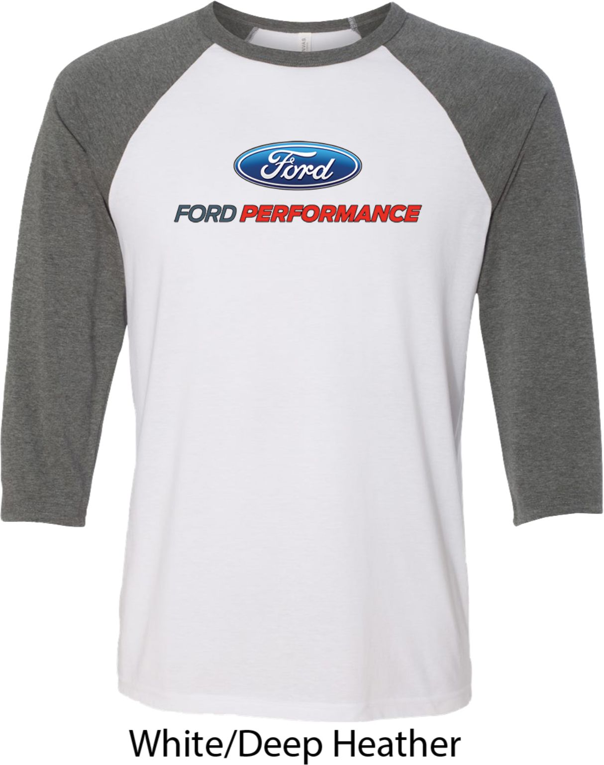 | | Ford Performance Parts Mens Raglan ShirtFord Performance Parts Mens Raglan Shirt A popular design for Ford racing A cotton/poly/rayon blend Available in Small, Medium, Large, XL & 2XL Also available in colors Black/Deep Heather, Black/Red, Black/White, Black Marble/Black, Deep Heather/Black, Grey/Charcoal Black, Grey/Emerald, Grey/Maroon, Grey/Navy, Grey/Red, Grey/Royal, White/Asphalt, White/Black, and White/Dark Grey |